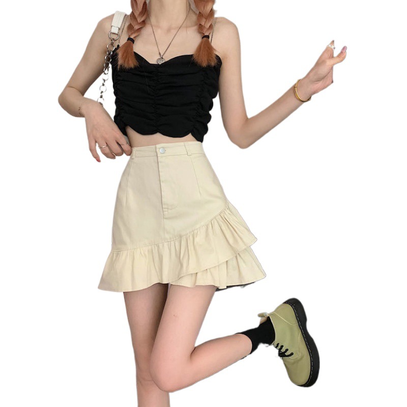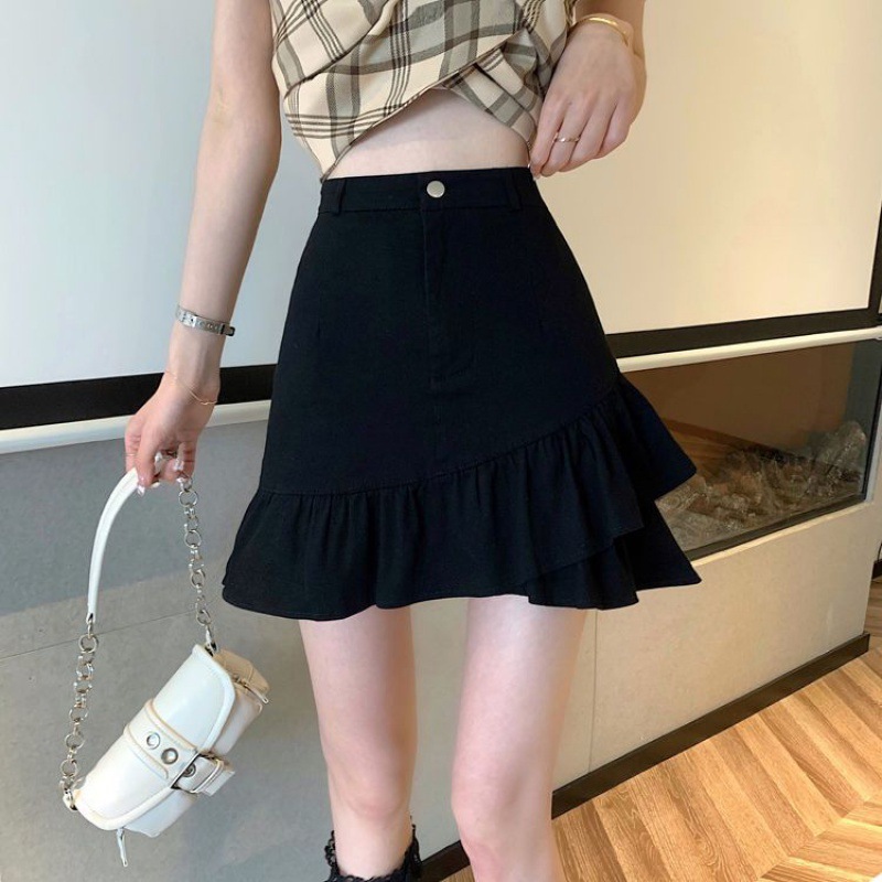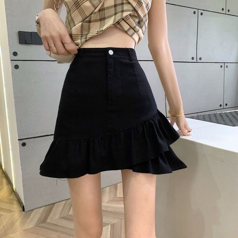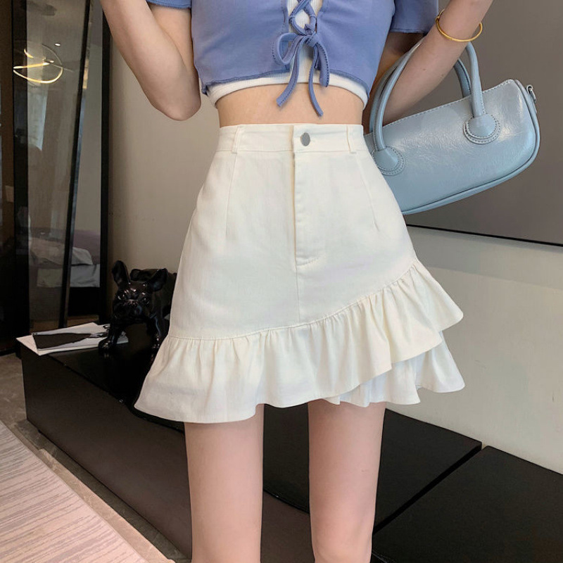 Главная страница > Юбка с асимметричными рюшами 2025 лето высокая талия А-силуэт закрывающая бедра утягивающая белая джинсовая юбка для женщин с небольшими размерами