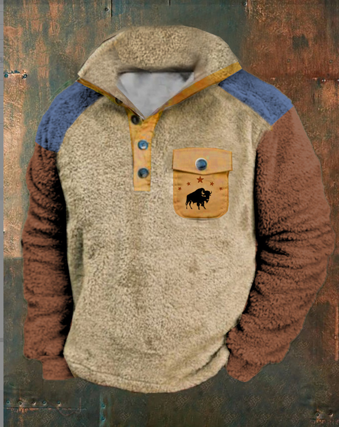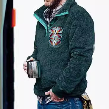 Независимая станция внешней торговли весной мужской европейский и американский повседневный фланелевый принт плюшевый свитер мужской пуловер