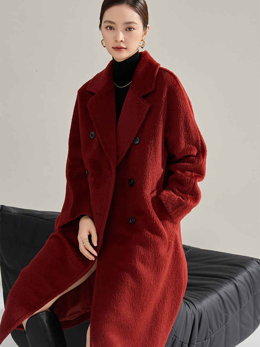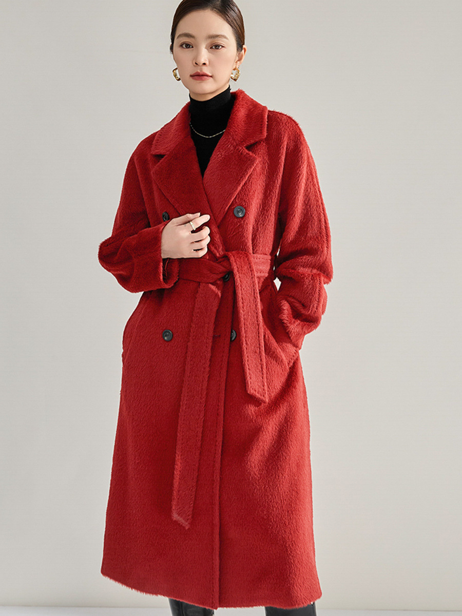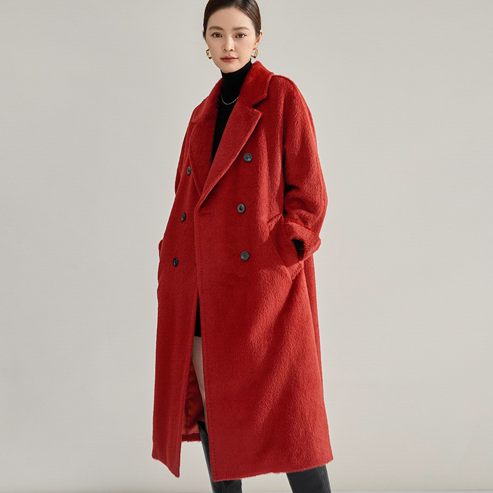 Главная страница > Новое зимнее женское шерстяное пальто 101801, длинное, из шерсти соли, альпаки и анкары, красное, для женщин, 22519