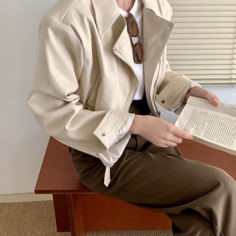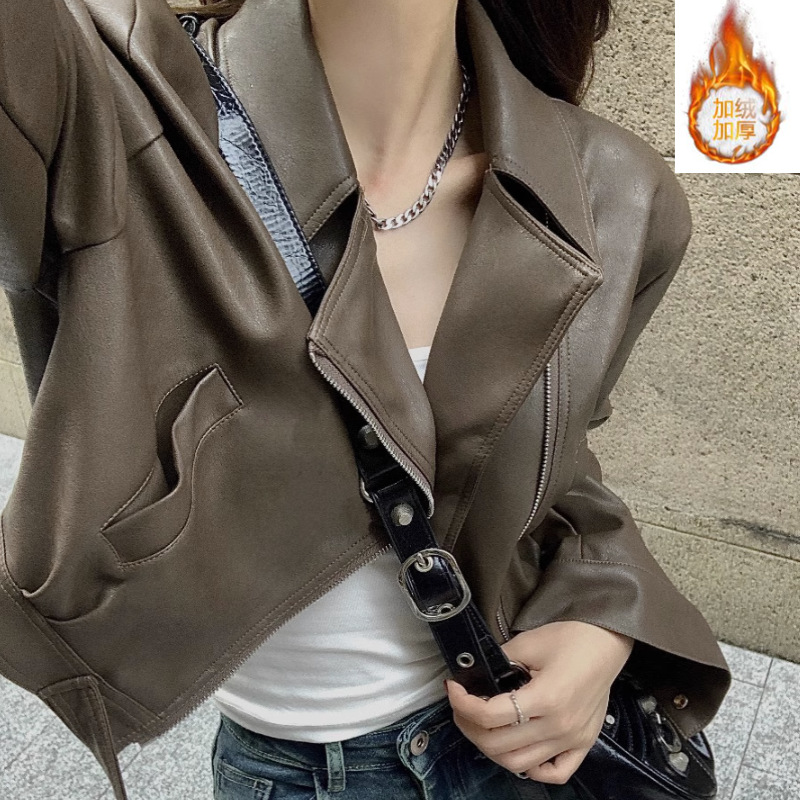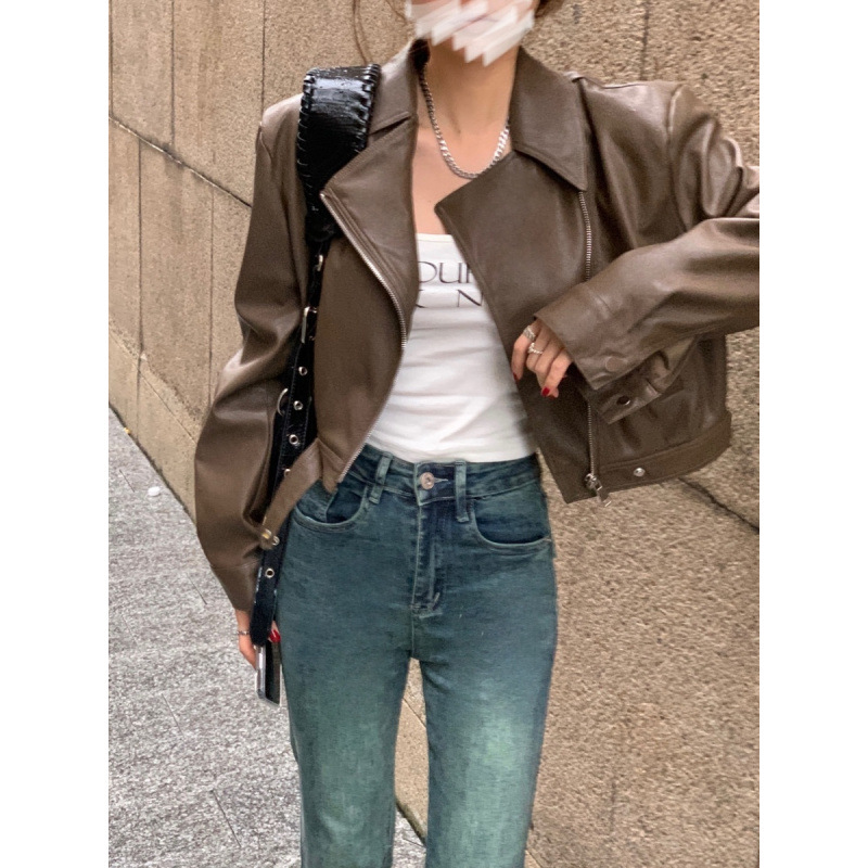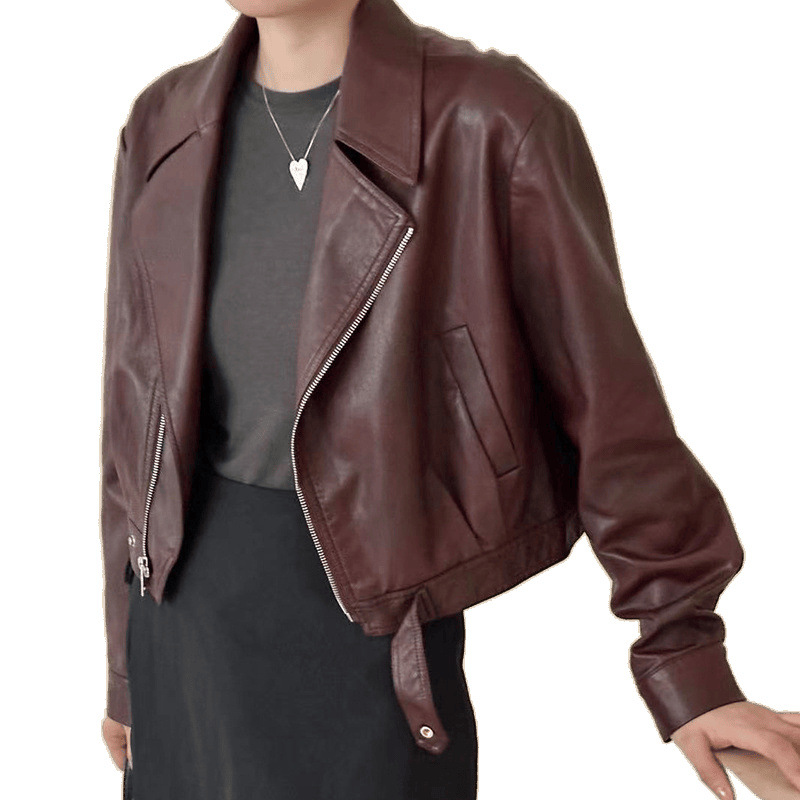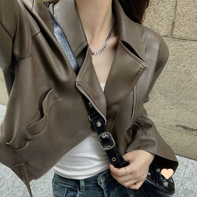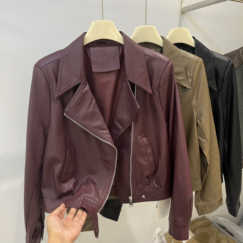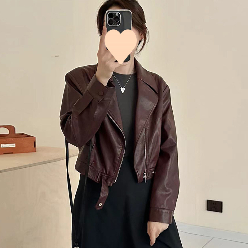 Главная страница > Короткая кожаная куртка европейского стиля с отложным воротником для женщин, новая высококачественная кожаная куртка в уличном стиле весны и осени 2025 года.