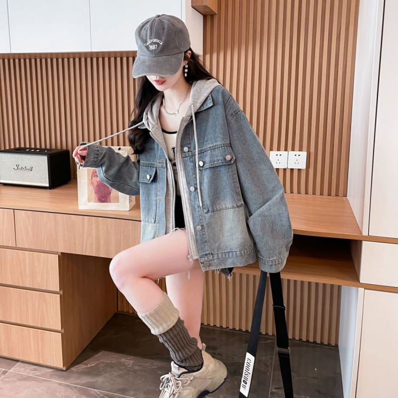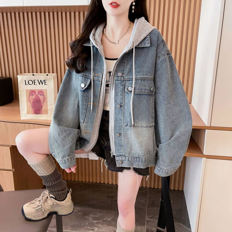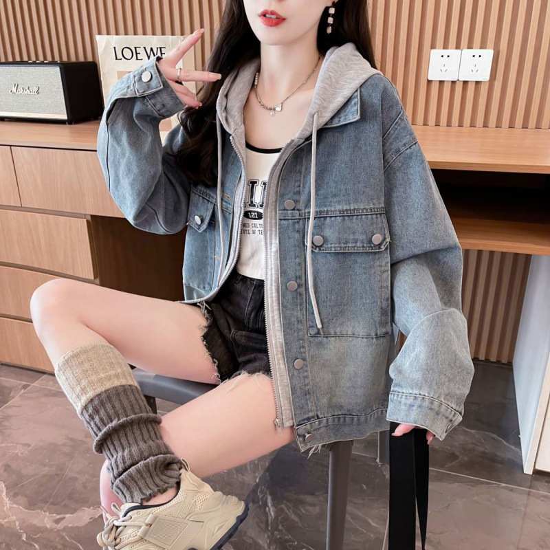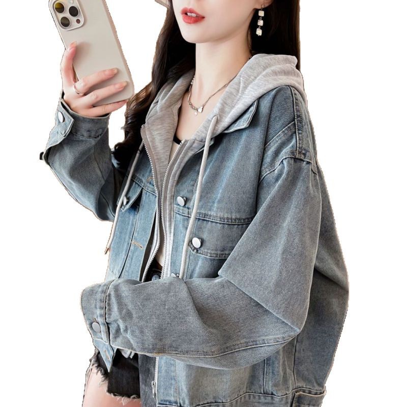 Главная страница > Поддельные две части джинсовой куртки с капюшоном женский цвет дизайн топы осень 2025 новая иностранная куртка с уменьшением возраста