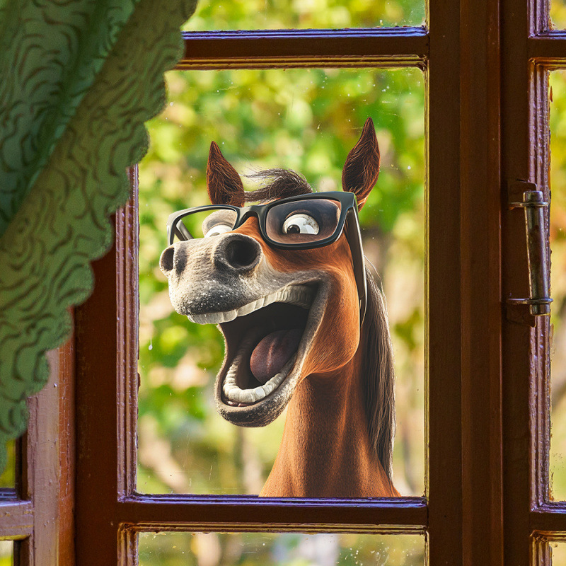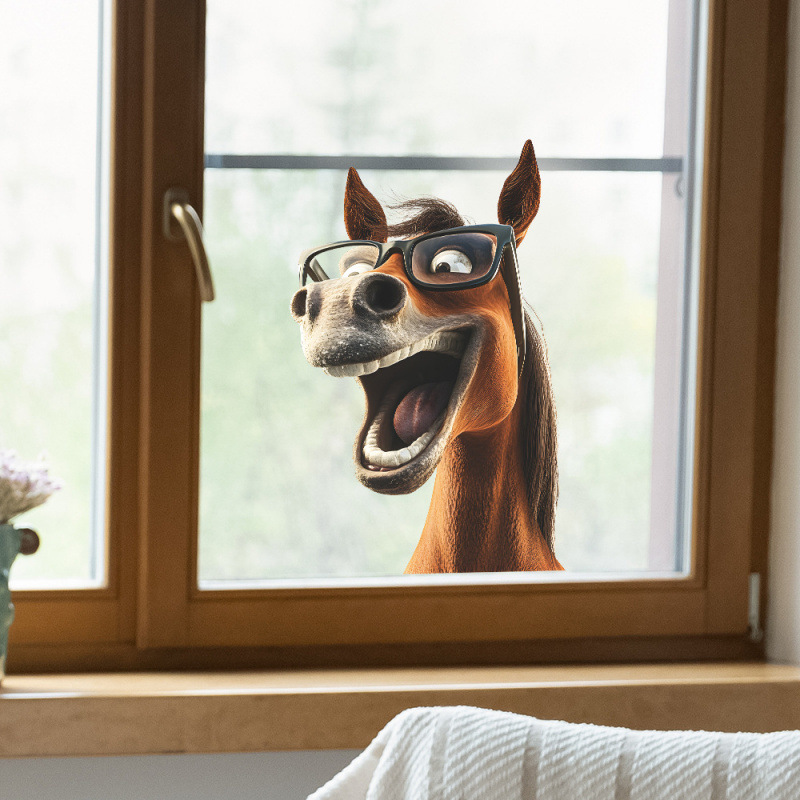 Главная страница > Fun-f286 креативные смешные головы лошади стеклянные окна дома украшение декоративные окна наклейки оптовые трансграничные УФ
