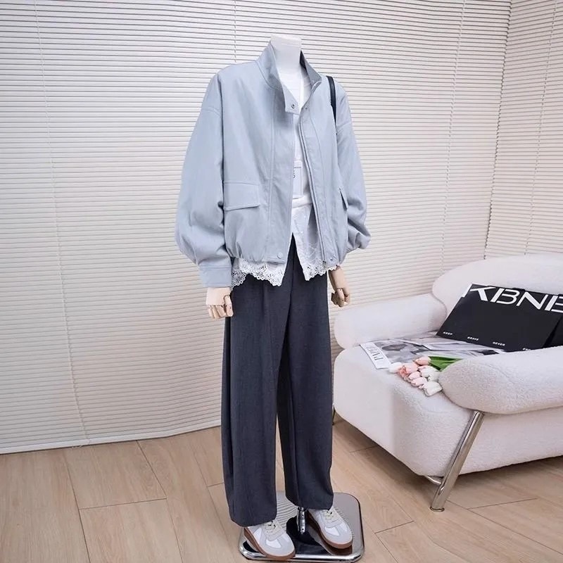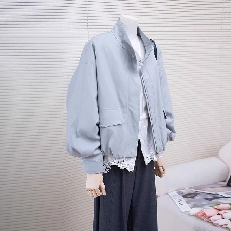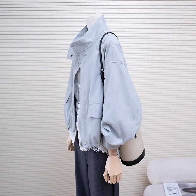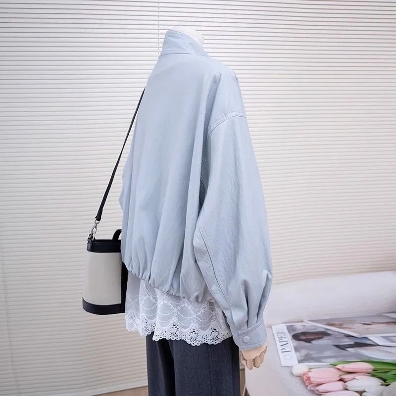 Главная страница > Светло-голубая кожаная куртка в корейском стиле, повседневная ретро-одежда для женщин, новый стиль весны 2025, универсальная кожаная куртка