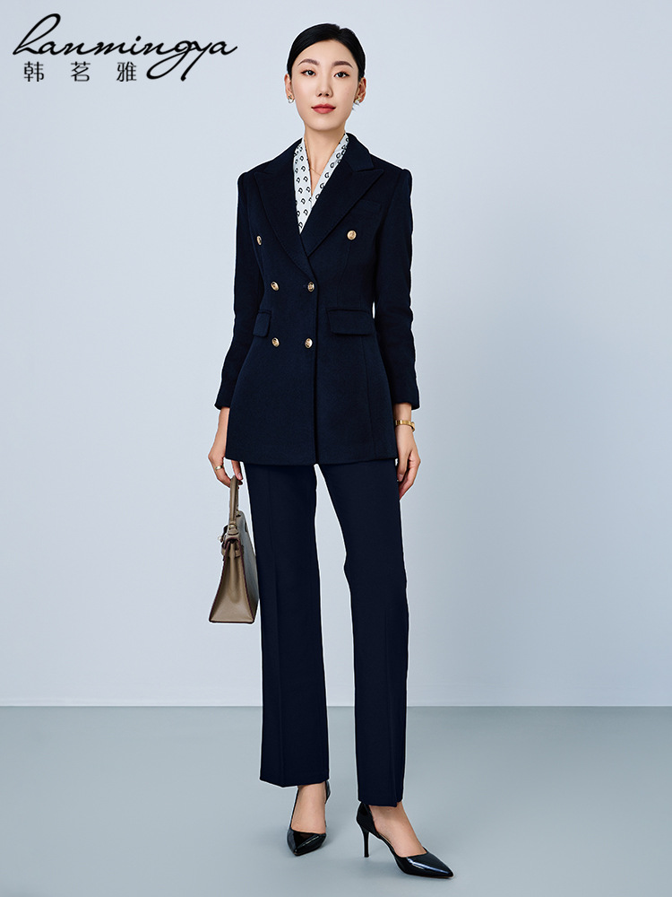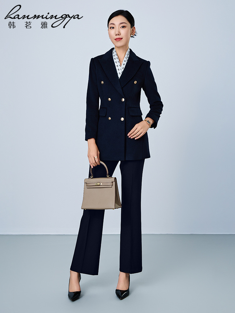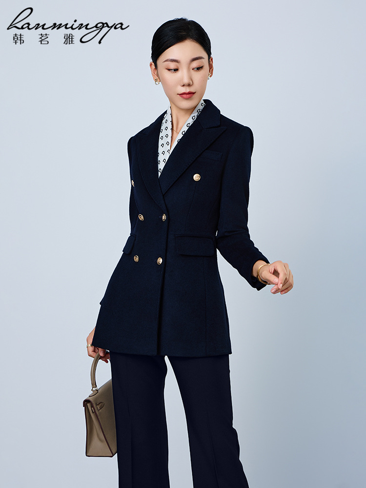 Главная страница > 2025 новый модный женский тибетский синий черный шерстяной шерстяной шерстяной пальто весной стройный темперамент профессиональный женский костюм
