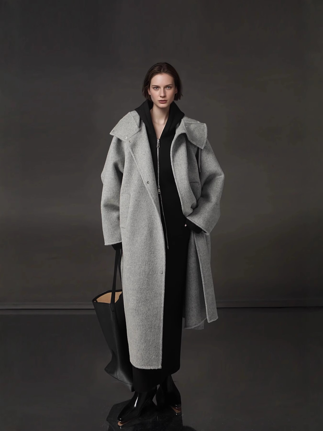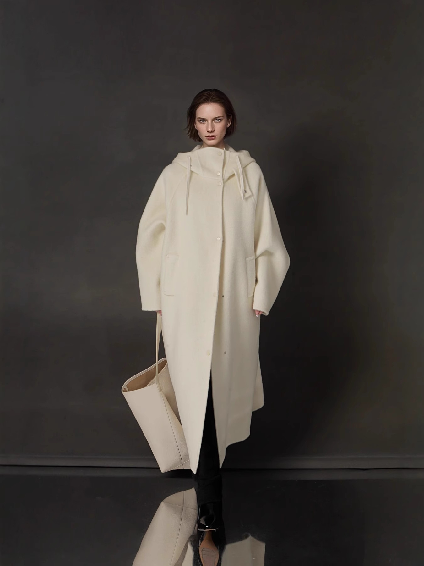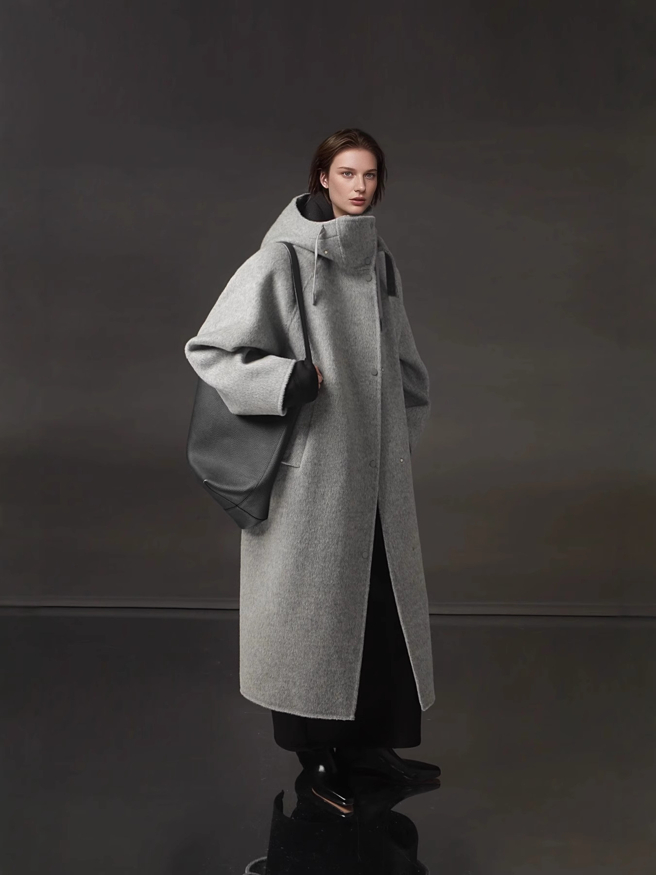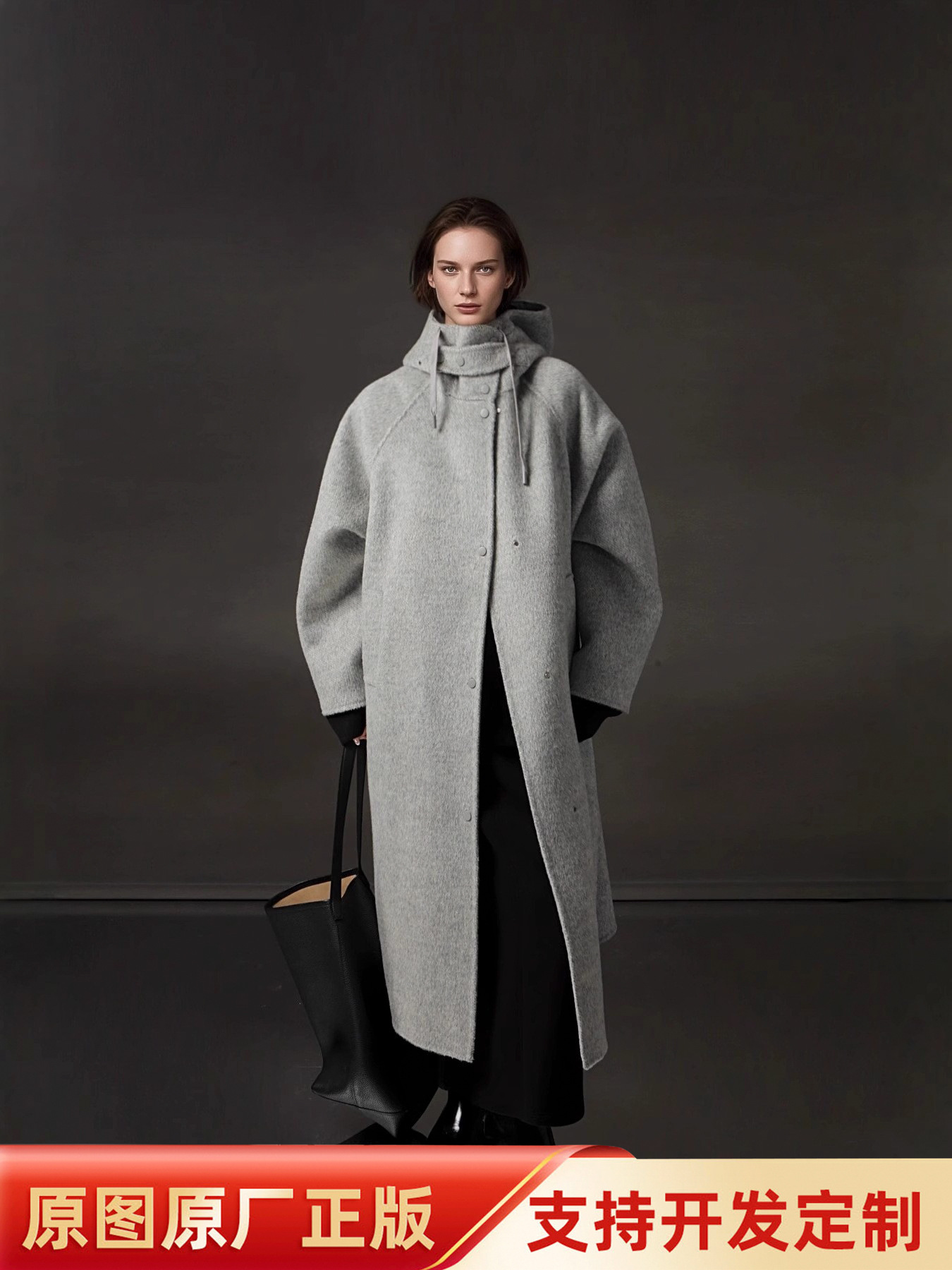Главная страница > Корейская шерстяная верхняя одежда с капюшоном, свободная верхняя одежда средней длины из альпаки, женская двусторонняя шерстяная верхняя одежда на осень и зиму