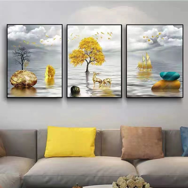 Главная страница > Nis Тройная подвесная картина Гостиная Декоративная живопись Современный простой диван Фон Настенные росписи Спальня Столовая Nordic Free