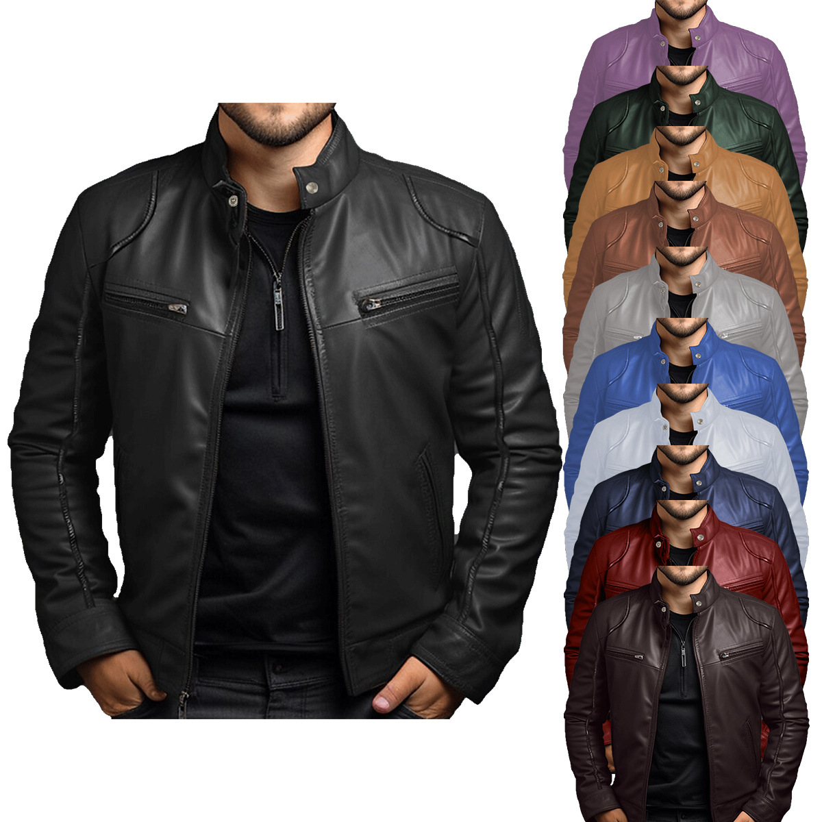 Главная страница > Внешняя торговля Amazon европейские и американские мужские мотоциклетные кожаные куртки мужские молодые воротник панк кожаные куртки мужское одобрение