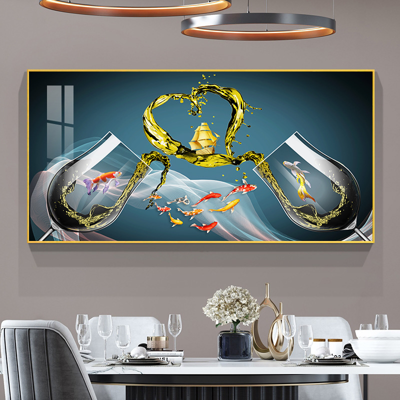 Главная страница > Ресторан «Девять рыбок», декоративная живопись, свет, роскошь, современный минималистский стиль, столовая, винный бокал, фреска, обеденный стол, фон, настенная живопись, ощущение высокого класса.