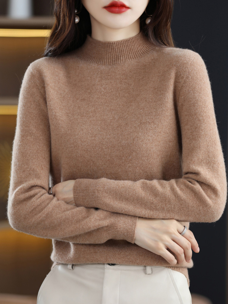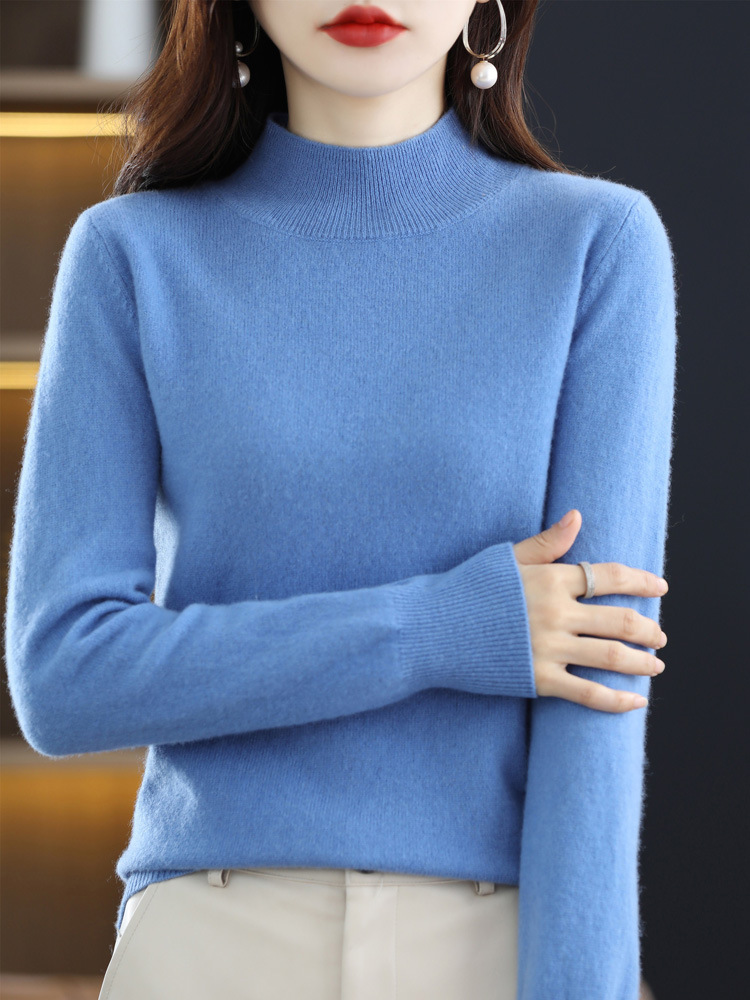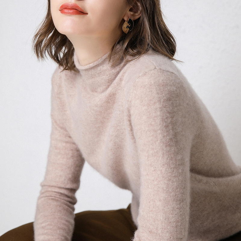 Главная страница > Шерстяной свитер со скрученной водолазкой, женская вязаная Базовая рубашка из 100% чистой шерсти, осенне-зимний простой кашемировый свитер в западном стиле