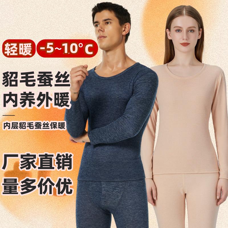 Комплект термобелья из шерсти и шелка с флисовой подкладкой, утолщенный для тепла, для мужчин и женщин, парный стиль, оптом и дропшиппинг.