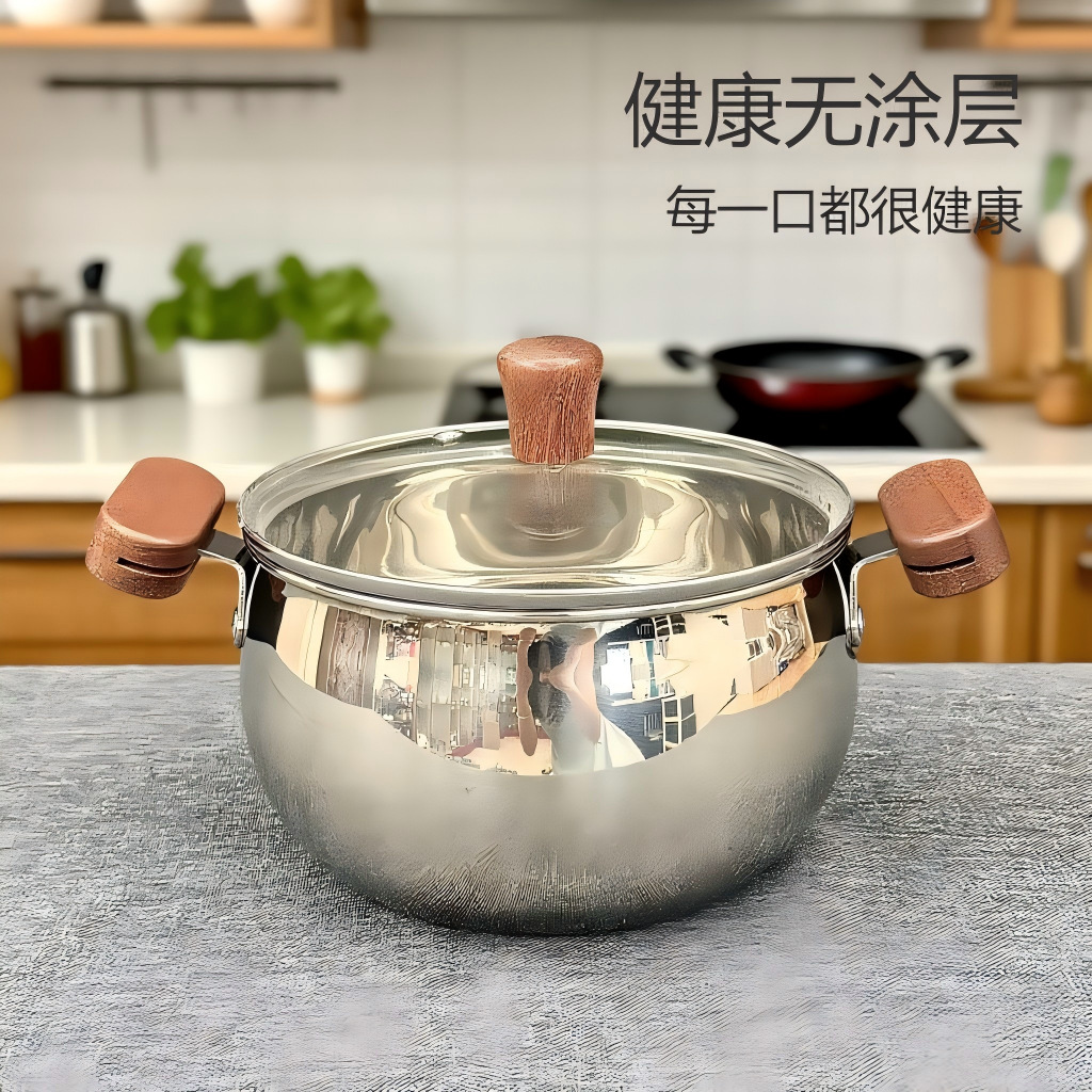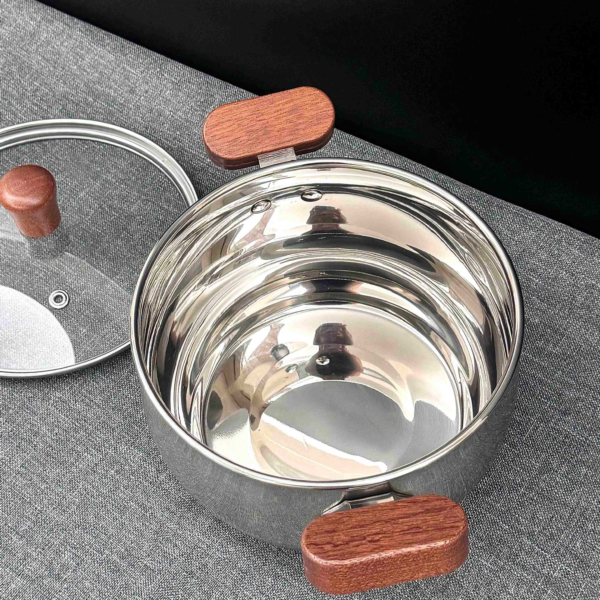 Главная страница > Суповая кастрюля из нержавеющей стали с двумя ручками и деревянной ручкой, бытовая кастрюля для детского питания, кастрюля для приготовления лапши, маленькая кастрюля для горячего молока