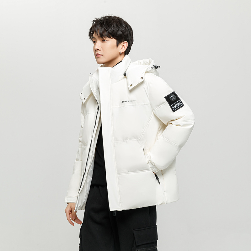 Главная страница > Новый модный брендовый пуховик для мужчин и женщин, парное пальто с капюшоном, зимний белый утиный пух, студенческий утолщенный теплый ветрозащитный Топ