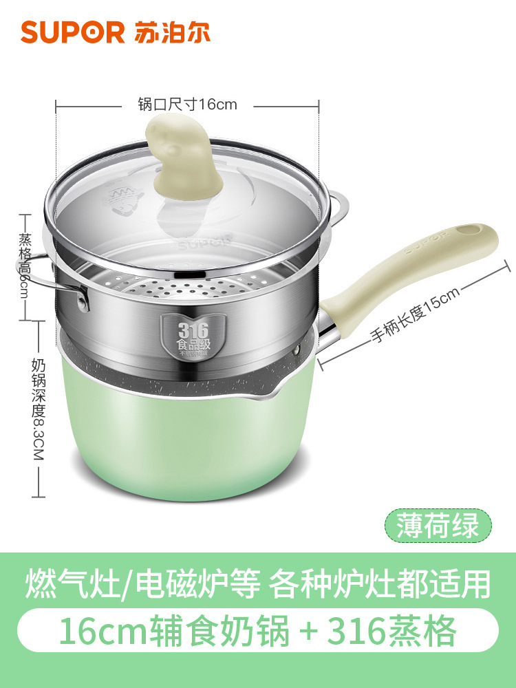 Многофункциональный горшок для детского питания, универсальный суповой горшок Supor для детей, небольшой молочный горшок, бытовой горшок для жарки и приготовления на пару.