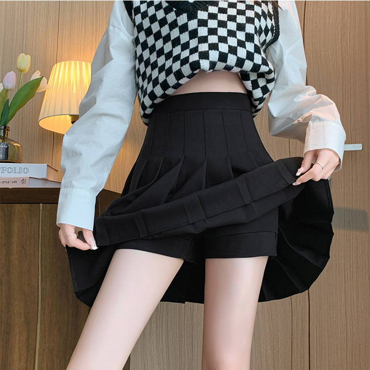 Главная страница > Женская плиссированная юбка в клетку с высокой талией в Корейском стиле, новая черная юбка А-силуэта для похудения с антибликовым покрытием для осени и зимы