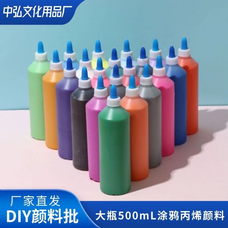 Оптовая продажа большой бутылки акриловой краски 500 мл для детского творчества, гипсовых фигурок, рисования, раскрашивания в детском саду.
