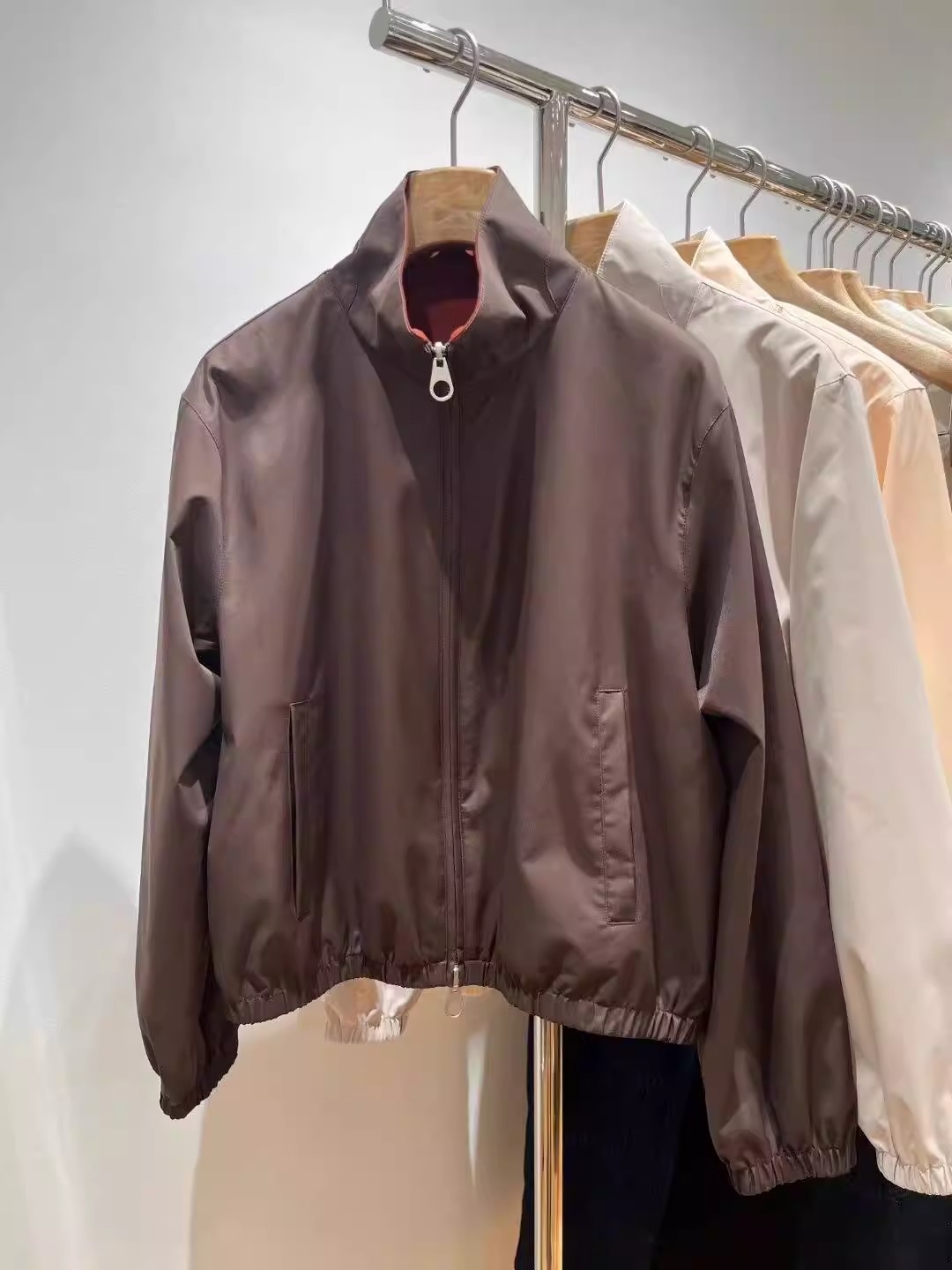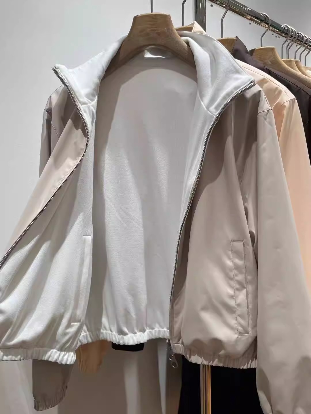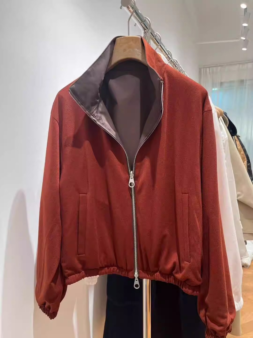Главная страница > Импортная мягкая удобная свободная повседневная куртка в стиле старых денег с двусторонним воротником-стойкой для женщин 25 лет.