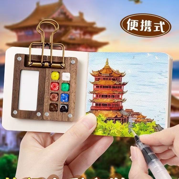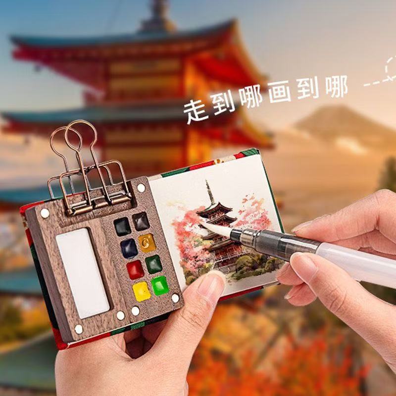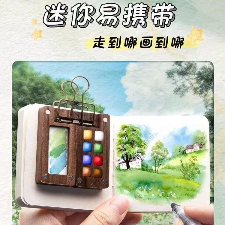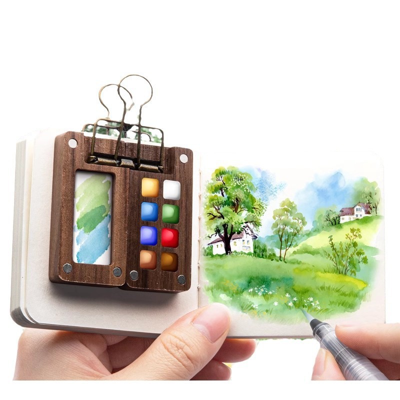 Главная страница > Мини-акварель пигментная коробка из грецкого ореха деревянная коробка портативная ручная книга эскиз путешествия книжка с картинками
