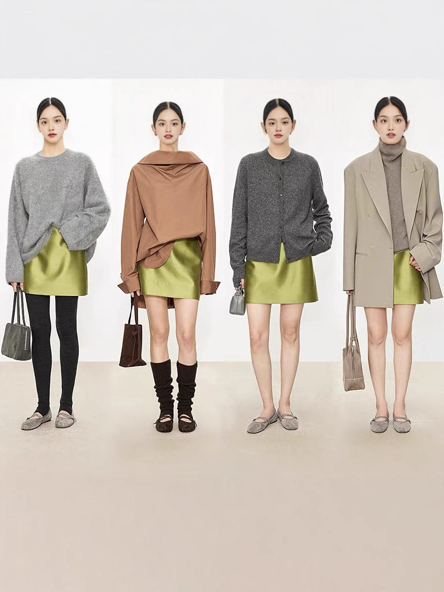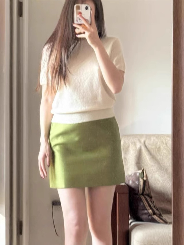 Главная страница > 2025 новая летняя шелковая шерстяная двусторонняя твил для коррекции изгибов талии и бедер, нормкор и универсальная прямая юбка микро-A средней длины.