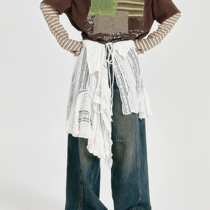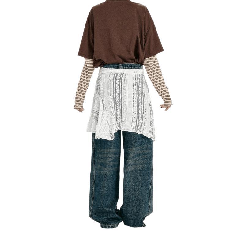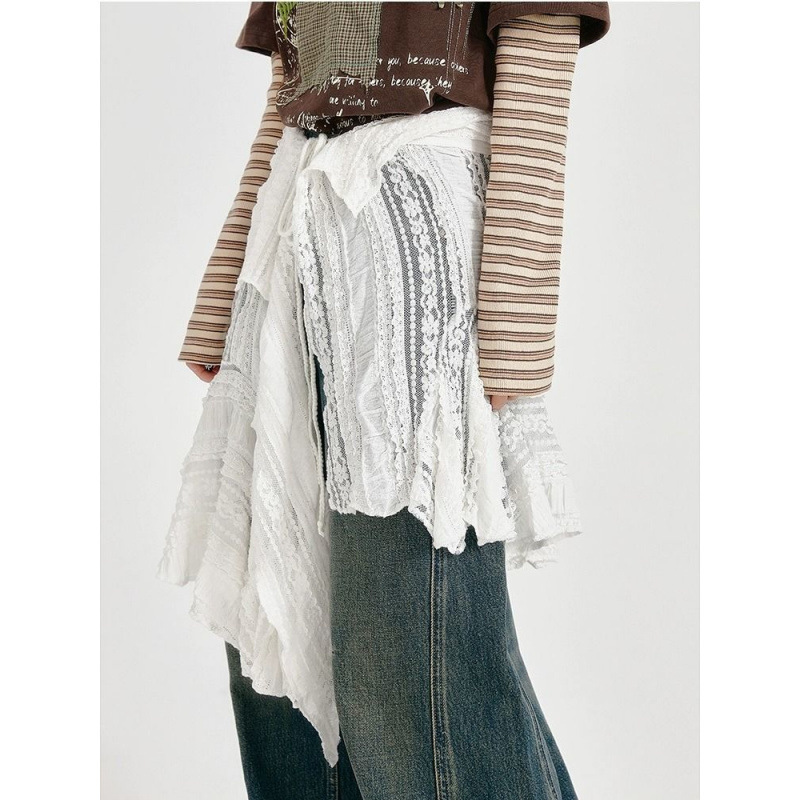 Главная страница > Американская ретро-юбка-накидка из белого кружева с неровным подолом для женщин, универсальная многослойная модель на бретелях.