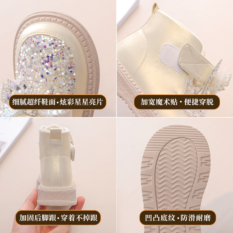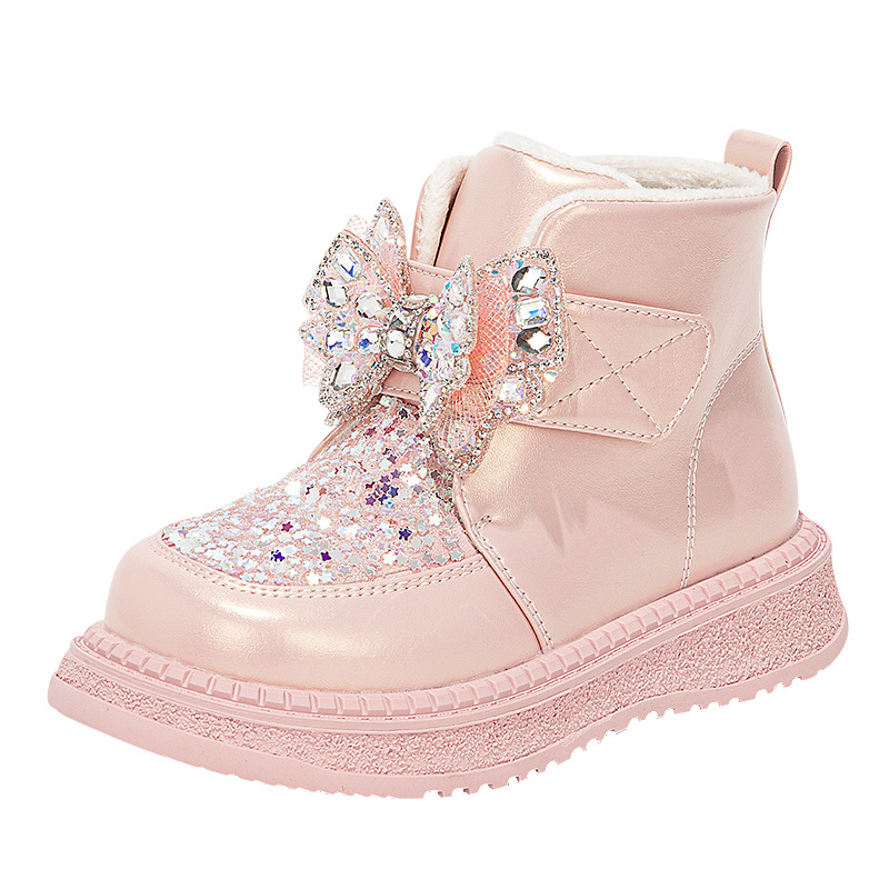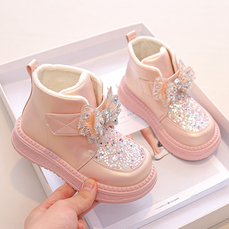Обувь для девочек, зимние сапоги, 2023, зимняя новая флисовая подкладка, утолщенная зимняя хлопковая детская большая хлопковая обувь, детские сапоги, зимние
