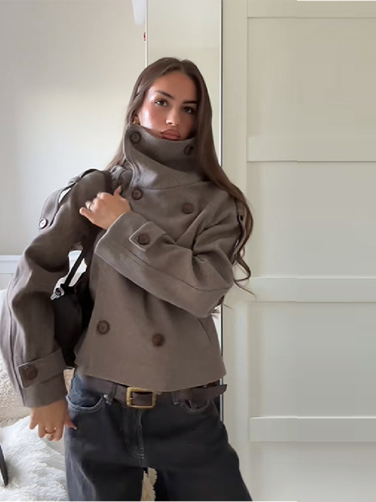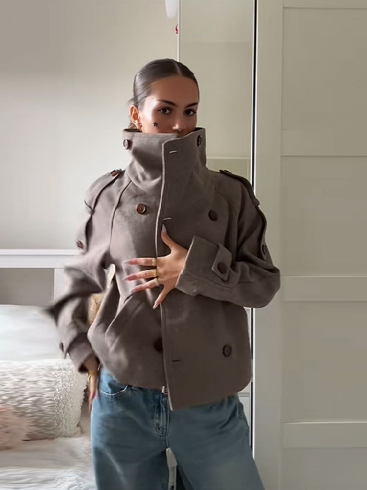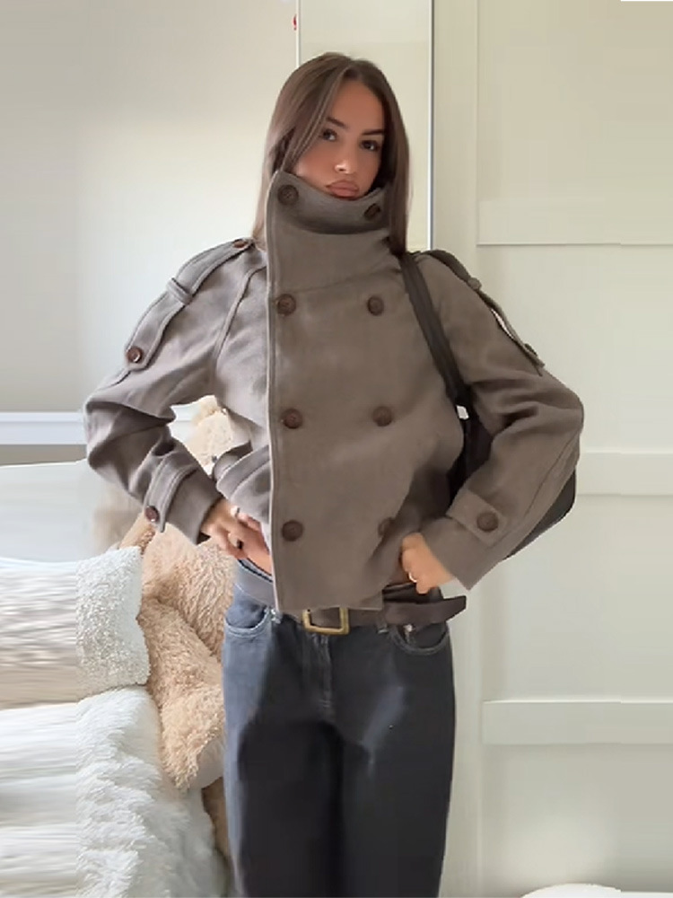 Главная страница > Новинка сезона Осень-Зима 2025: Удобное, повседневное, универсальное короткое шерстяное пальто с воротником-стойкой и пуговицами для трансграничной торговли на Amazon.