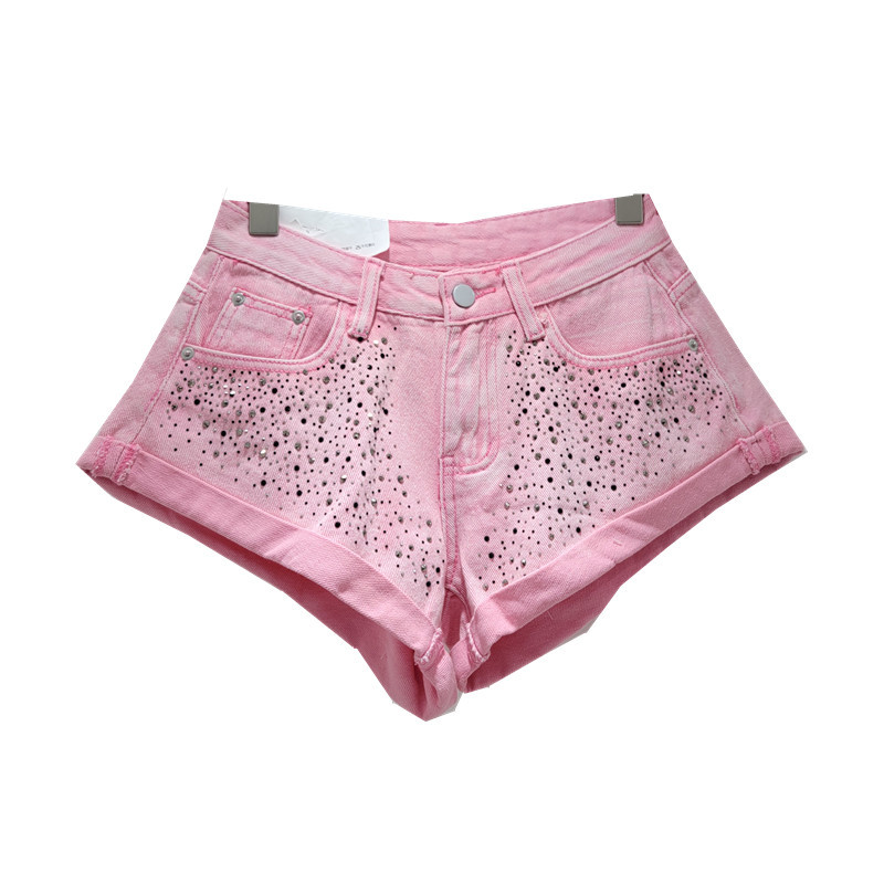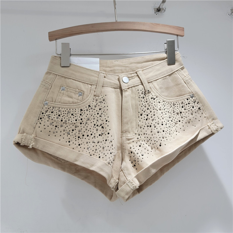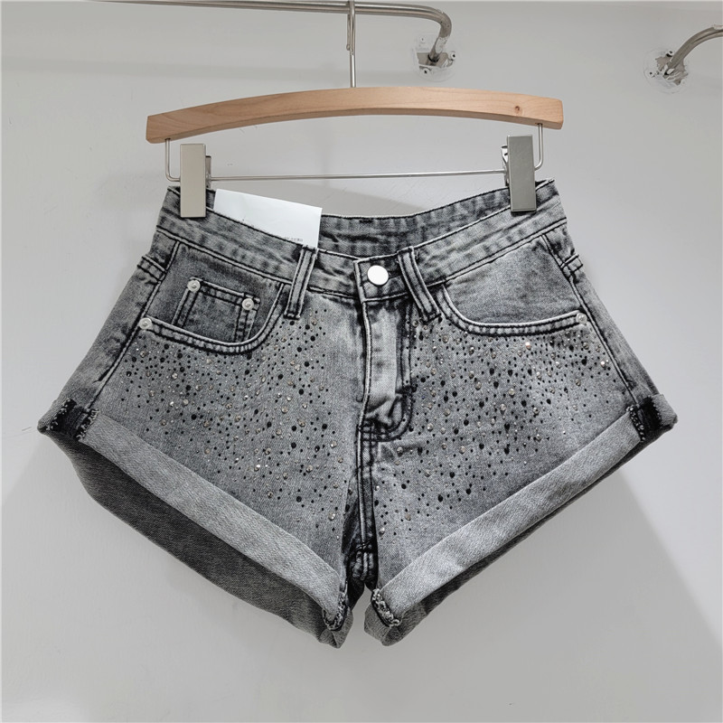 Американские джинсовые шорты в стиле ретро со стразами, женские летние новые брюки с широкими штанинами для керлинга 2024, ультра короткие шорты для горячих девушек
