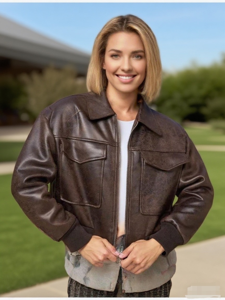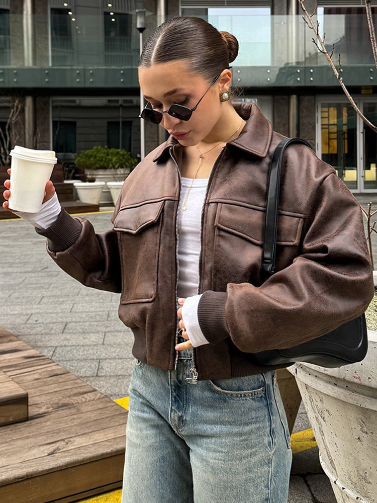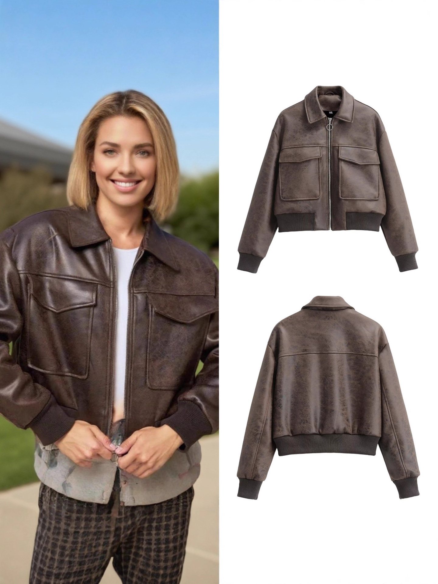 Главная страница > Трансграничная женская одежда AliExpress, осень 2021, новая мода, простые брюки-бомбер из искусственной кожи с большим клапаном и карманами для женщин