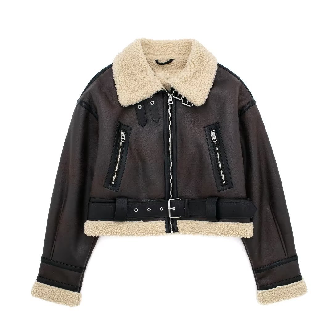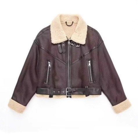 Главная страница > Оптовая продажа женской одежды для внешней торговли: осенняя европейская и американская универсальная куртка-пальто с отложным воротником, на молнии, с карманами, с длинными рукавами, двусторонняя, укороченная.