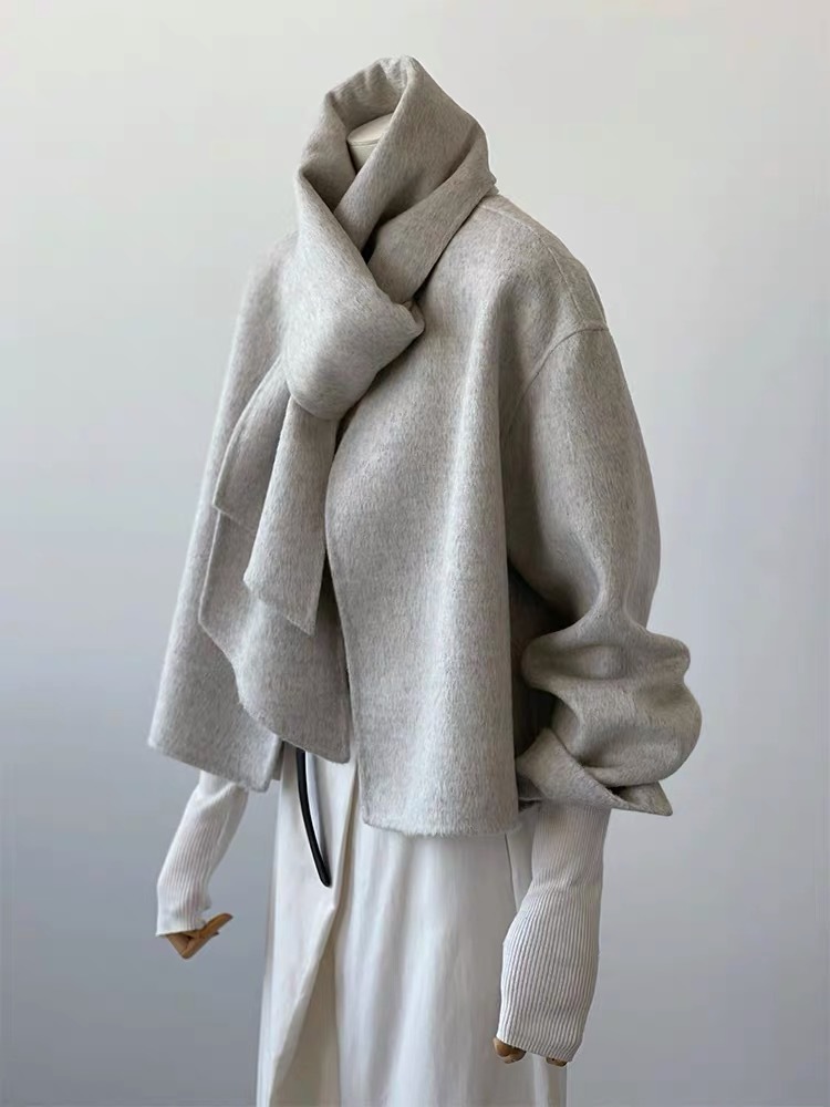 Главная страница > 23 осень-зима Новое короткое двустороннее кашемировое пальто с воротником-шарфом, женское маленькое шерстяное пальто Weibo с круглым вырезом