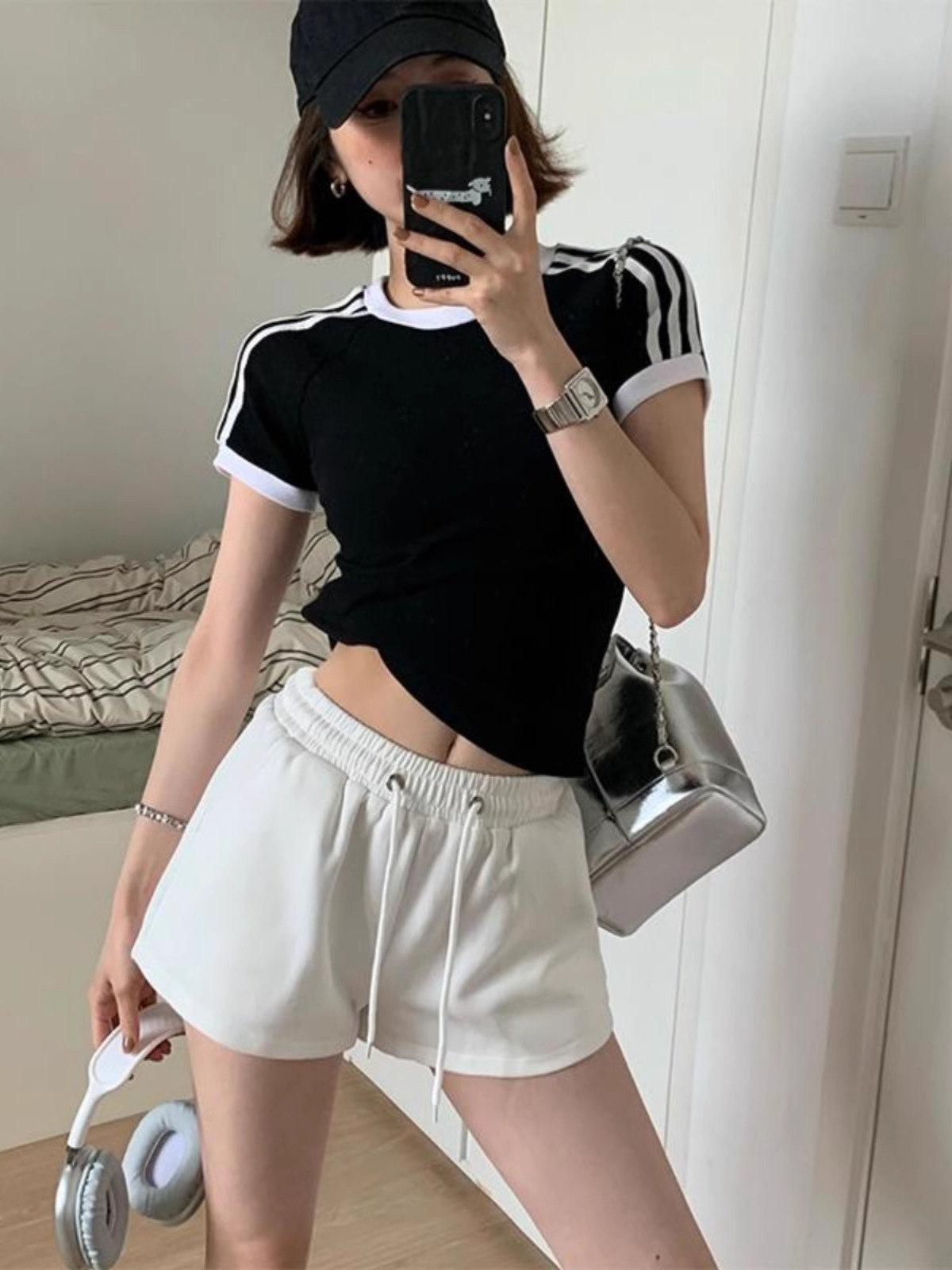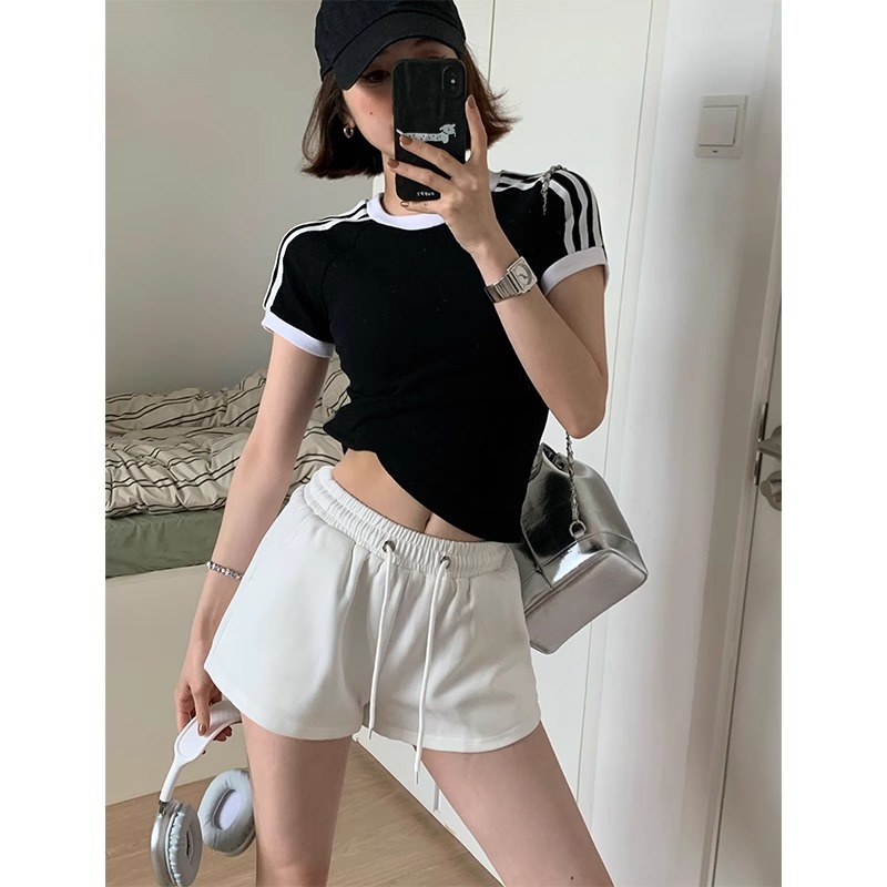 Главная страница > Американские спортивные шорты с широкими ногами женские летние 2025 новые наружные носить с высокой талией тонкие свободные шорты дикие повседневные брюки