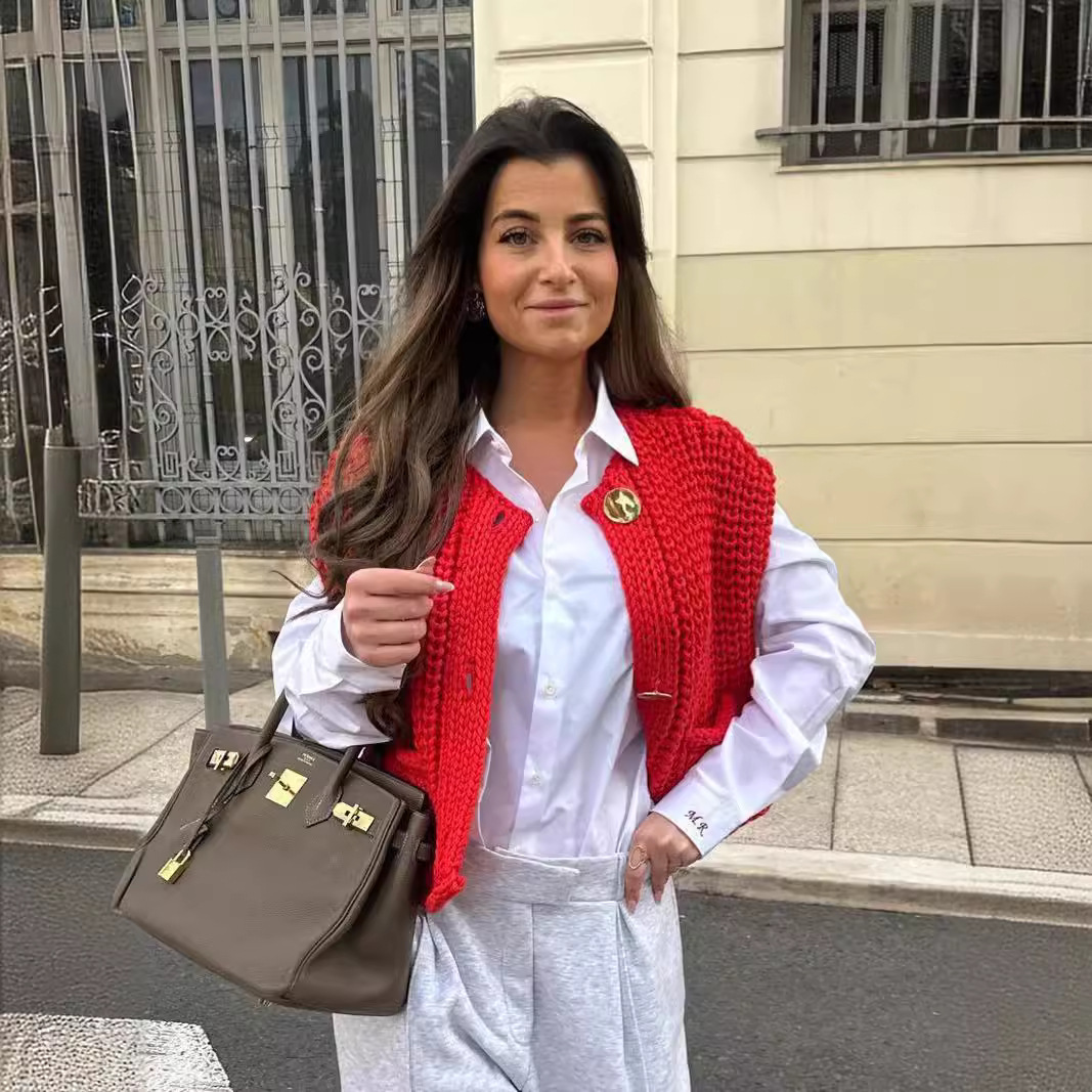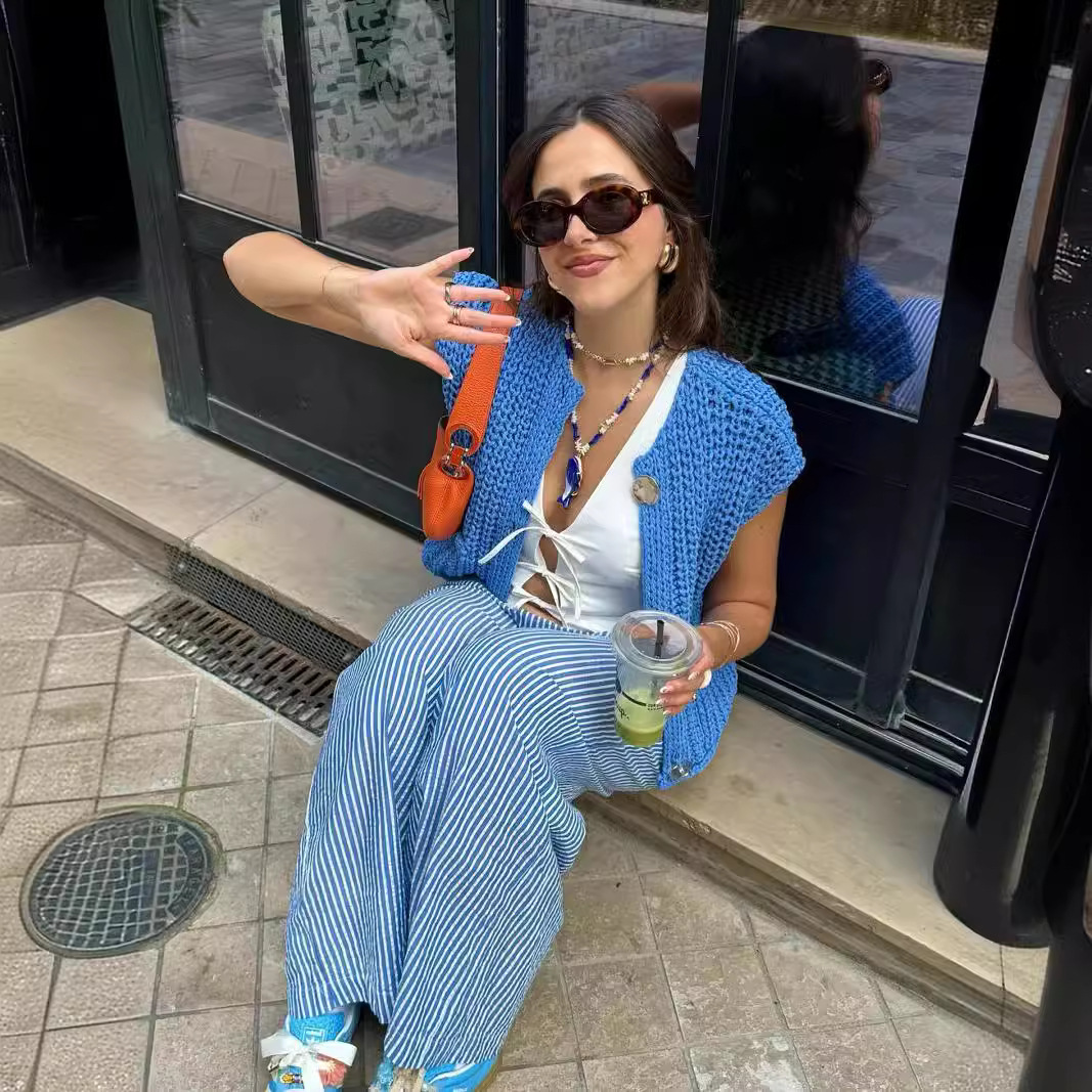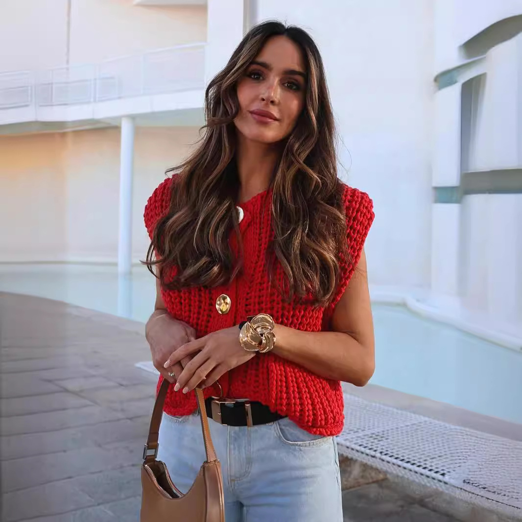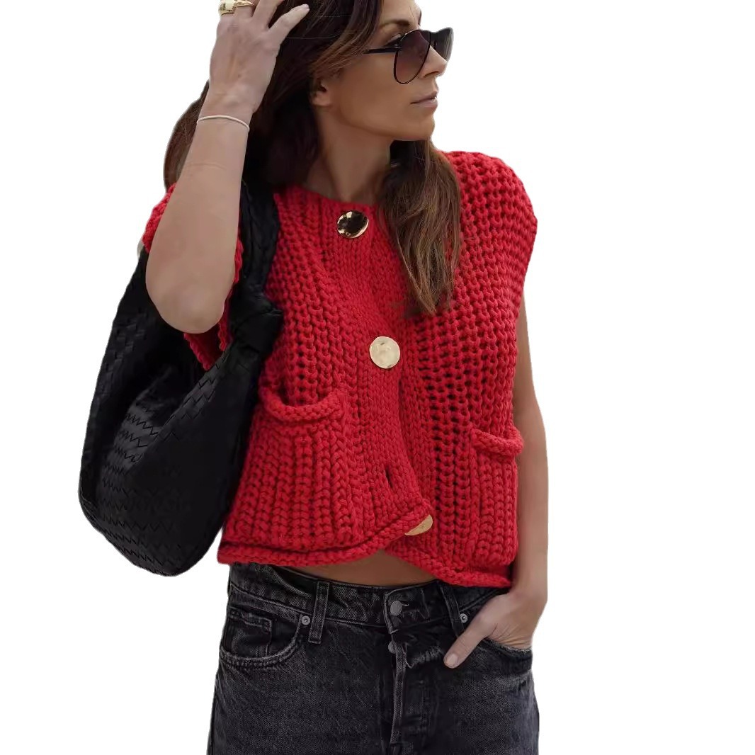 Главная страница > Новая коллекция женской одежды Amazon 2025: весенне-осенний укороченный вязаный жилет без рукавов в европейском и американском стиле с карманами