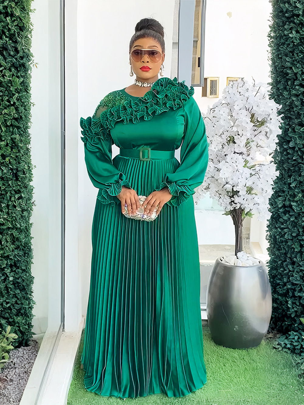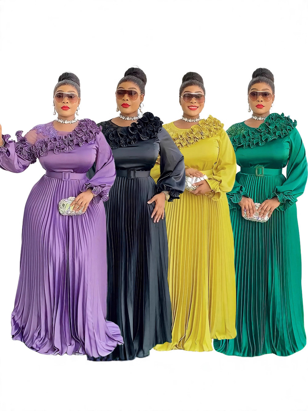 Главная страница > Трансграничное европейское и американское модное платье с длинными рукавами, африканская внешняя торговля AliExpress, женская плиссированная юбка больших размеров