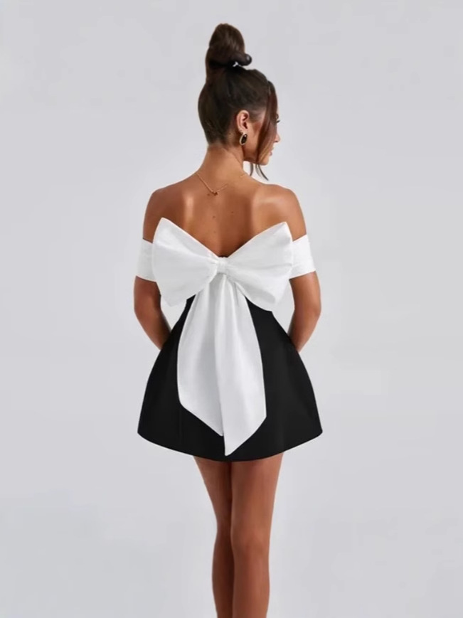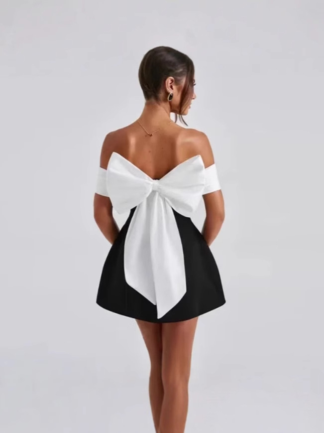 Главная страница > Черно-белое цветовое платье-бантик трансграничное европейское и американское женское INS интернет-красное красное платье премиум кросс асимметричная женщина