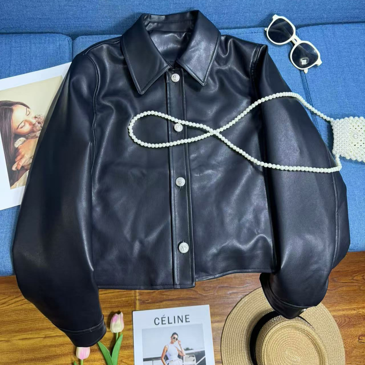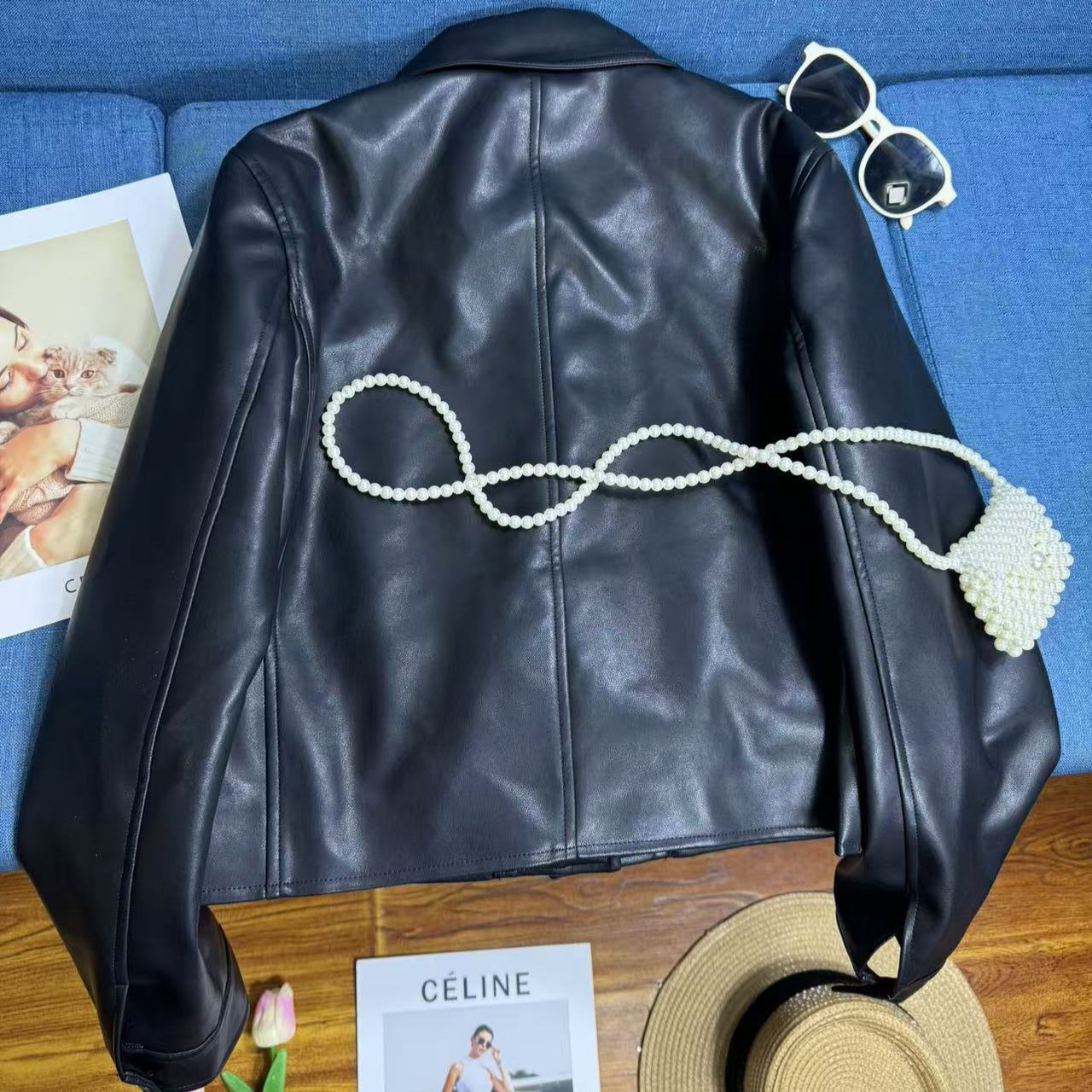 Главная страница > Черная короткая кожаная куртка ПУ женская весна и осень новая американская премиум-класса мотоциклетная куртка рыхлый темперамент