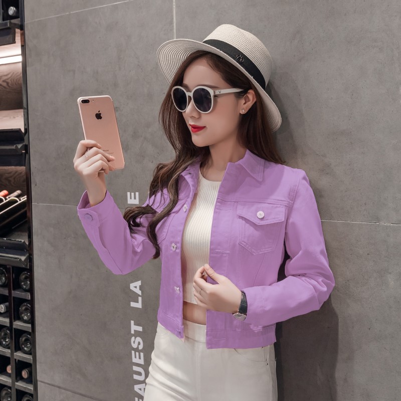 Главная страница > Джинсовая куртка женская 2025 Короткая корейская версия конфеты цвет студенческая куртка с длинными рукавами европейская и американская весенняя женская одежда