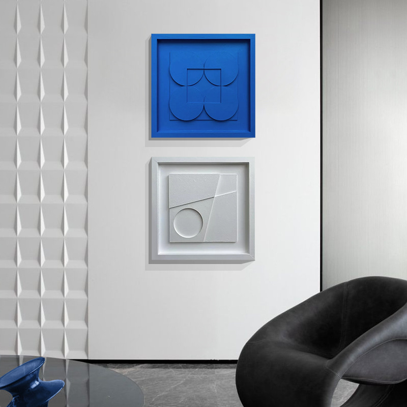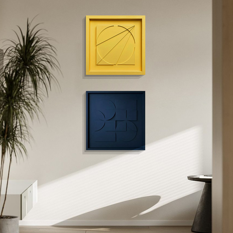 Главная страница > Современный минималистский стиль, однотонная текстура, квадратная декоративная картина, трехмерная ручная роспись, комбинация, Геометрическая абстрактная художественная роспись стен прихожей