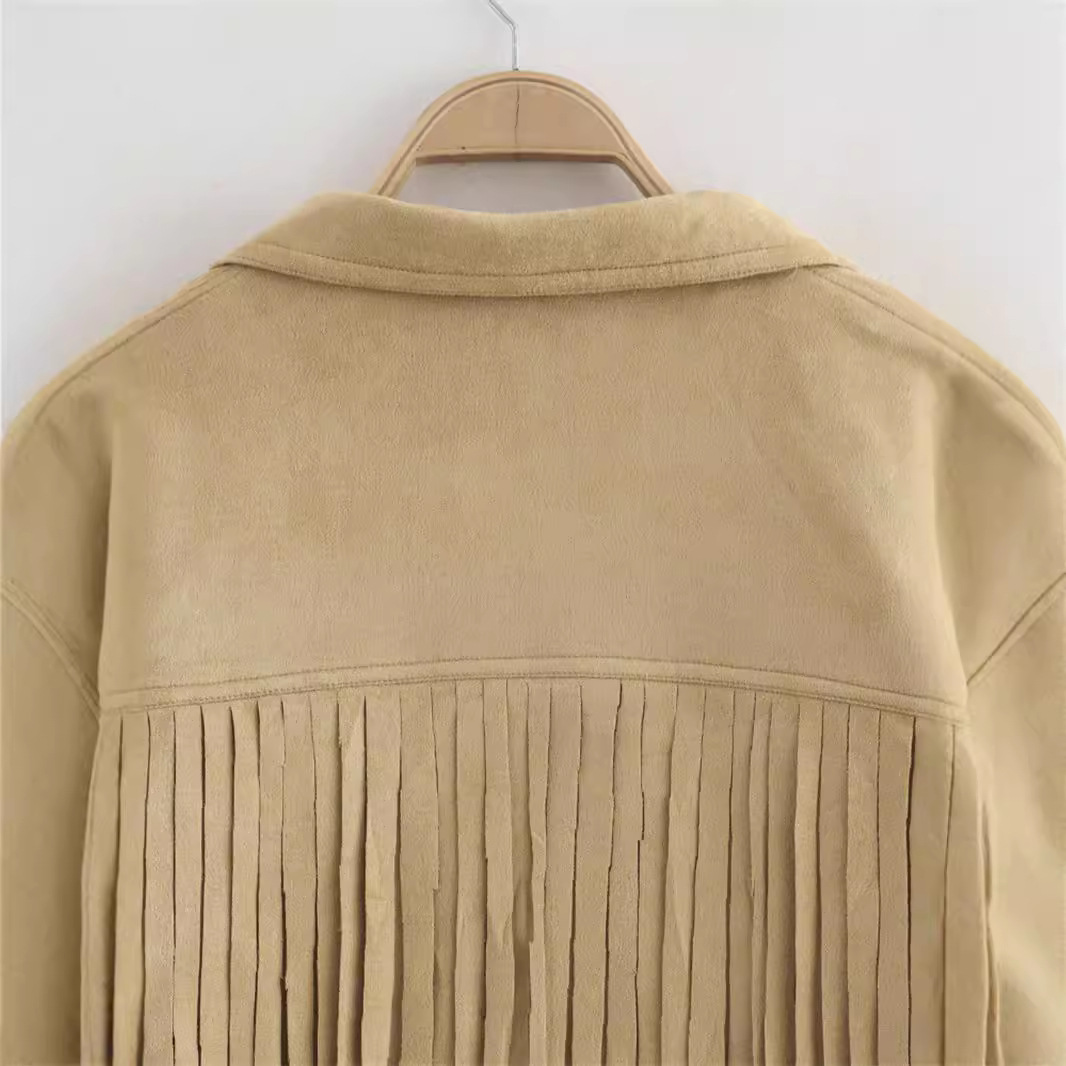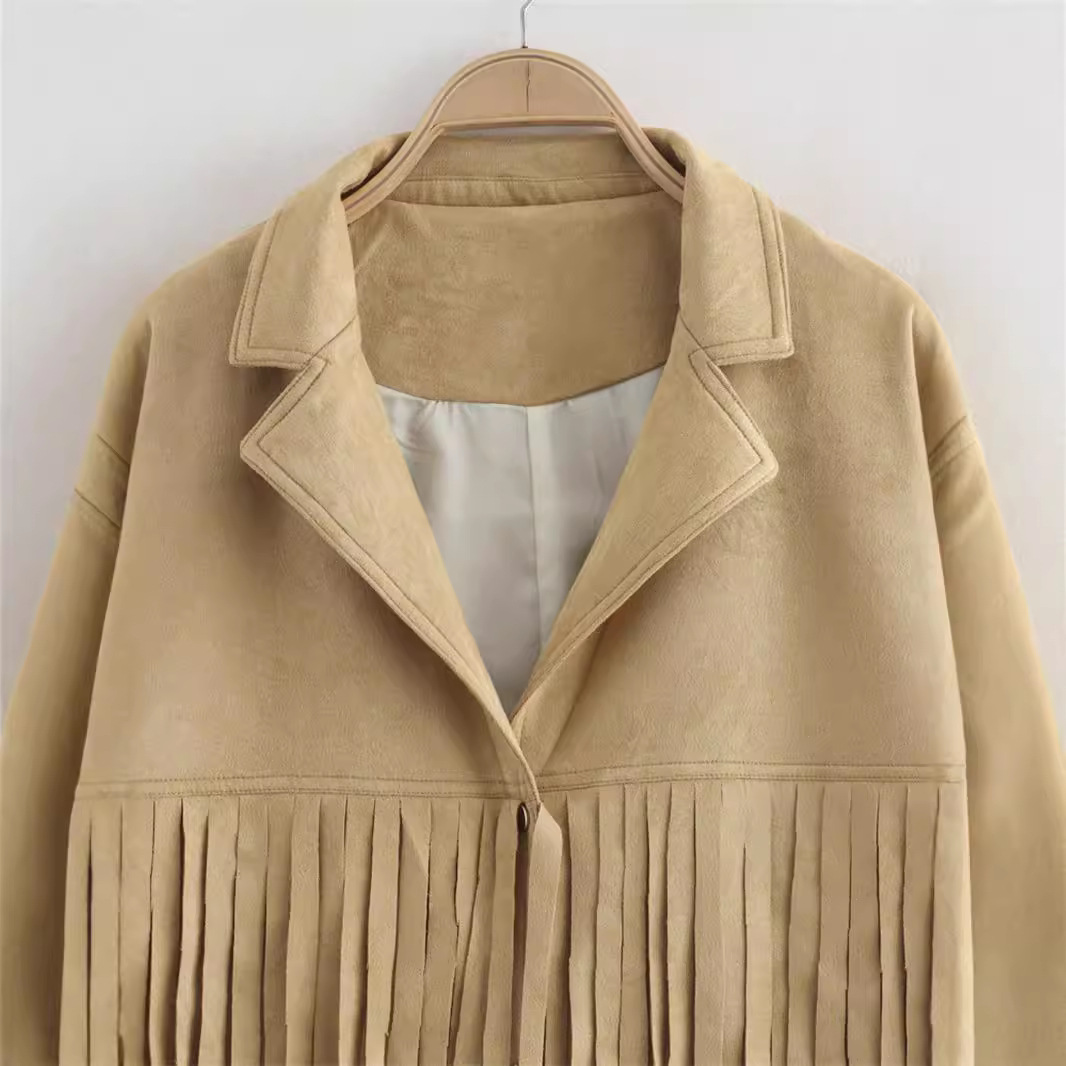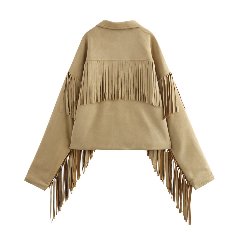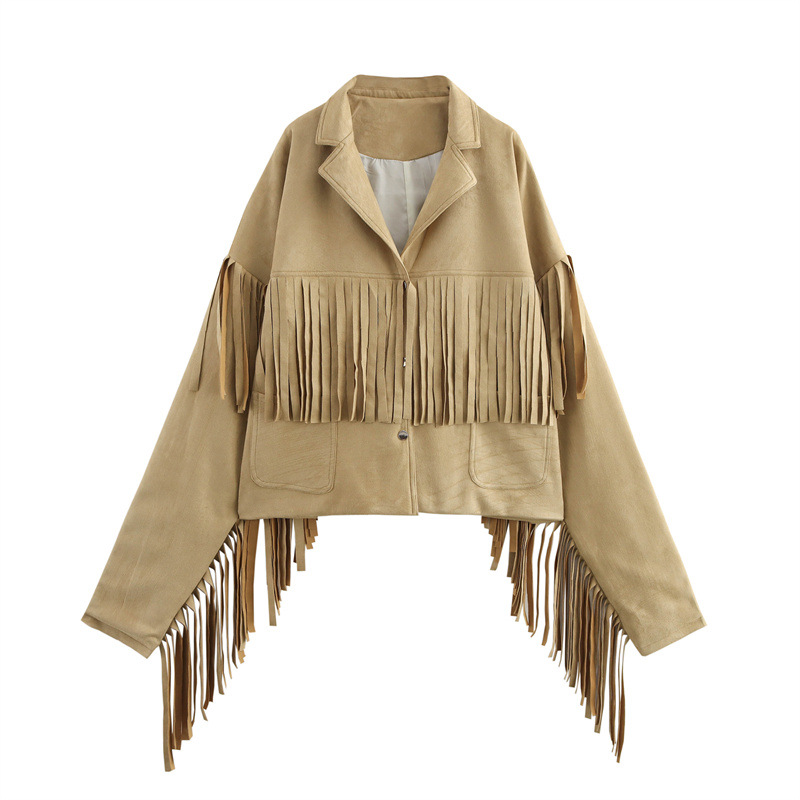 Главная страница > Внешняя торговля 2024 осенний новый европейский и американский стиль женской одежды ретро с кисточкой с длинными рукавами куртка с отворотом куртка куртка