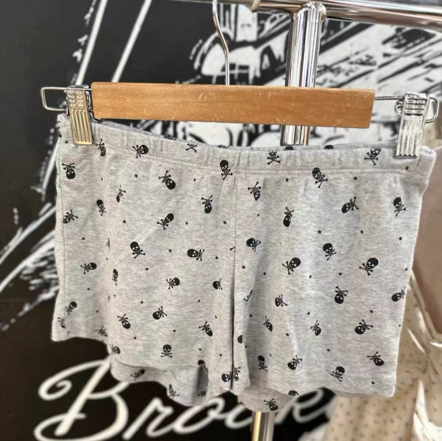 Главная страница > BM серая шорты с принтом черепа эластичным поясом повседневные брюки женские шорты летние новые домашние брюки bm тонкие широкие брюки