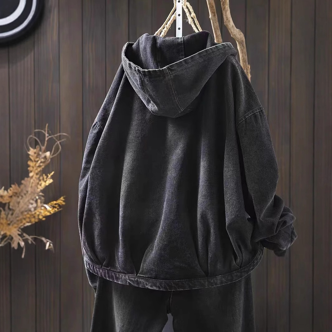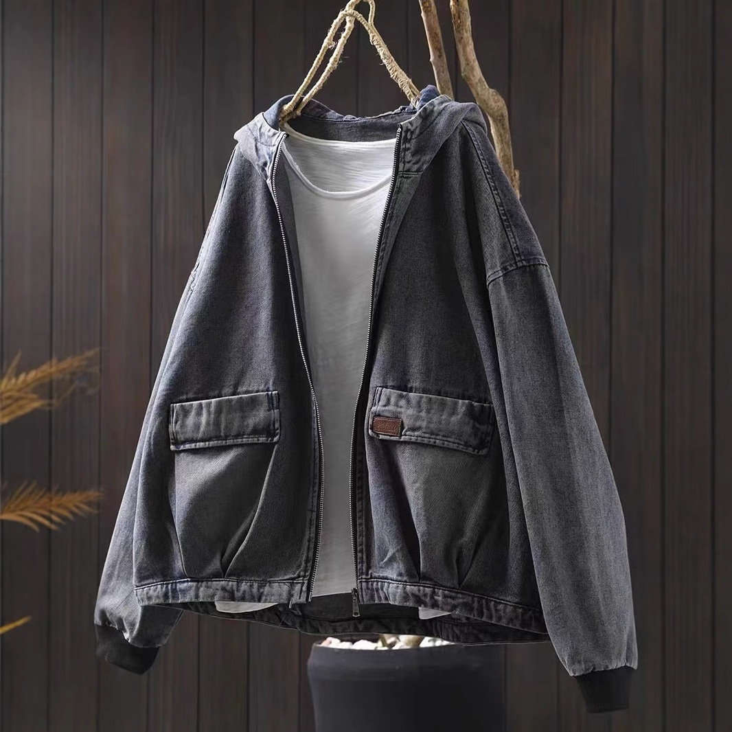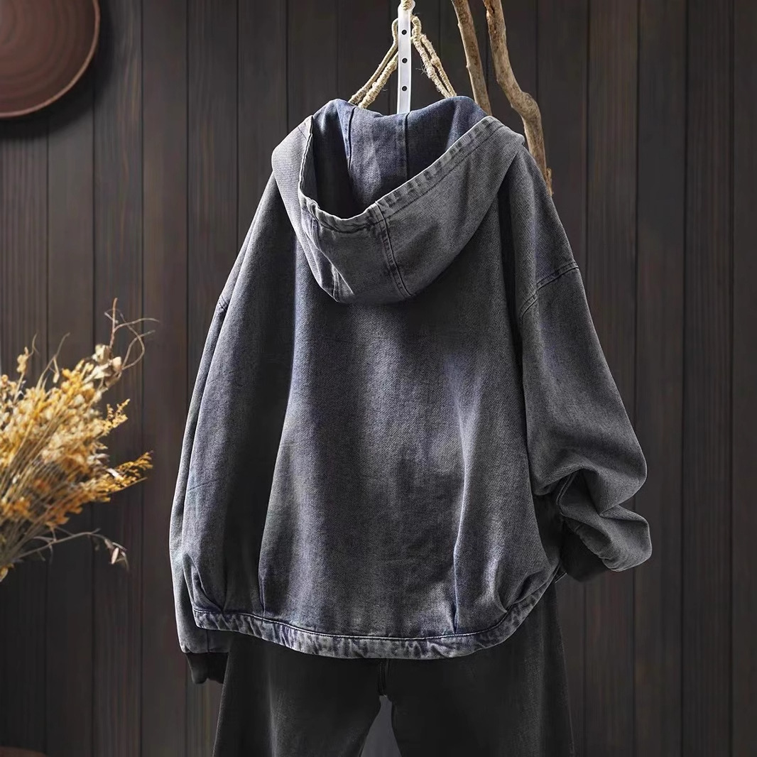 Главная страница > Новинка весны 2024, потертые джинсовые топы с капюшоном в стиле ретро, женские свободные большие повседневные топы, топ