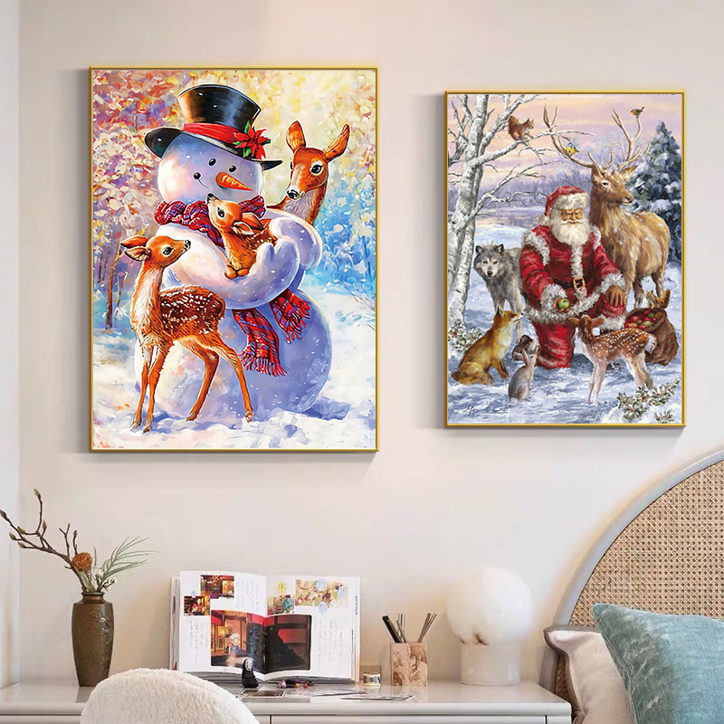 Главная страница > Рождественский Санта-Клаус снеговик холст роспись плакат настенное искусство гостиная современный декор