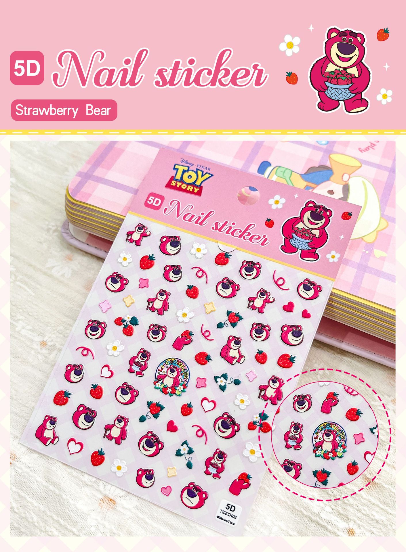 Клубничный медведь (наклейка для ногтей 5D)