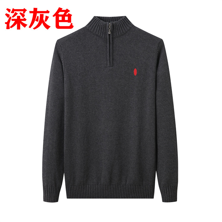 Главная страница > Мужской свитер с воротником-стойкой и молнией до середины груди, с логотипом пони, весенне-осенний пуловер с длинным рукавом, трикотажный топ, базовая рубашка, мужская верхняя одежда.