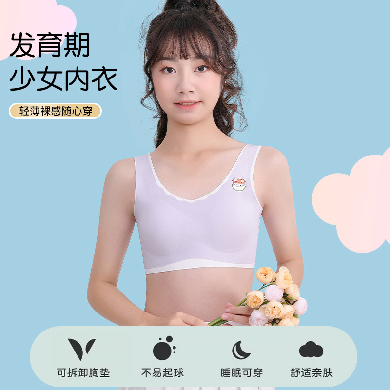 Бесшовные период развития удобный бюстгальтер для девочек младшая школа студент Спортивное нижнее белье красота обернутая спиной грудь летний топ без рукавов женский