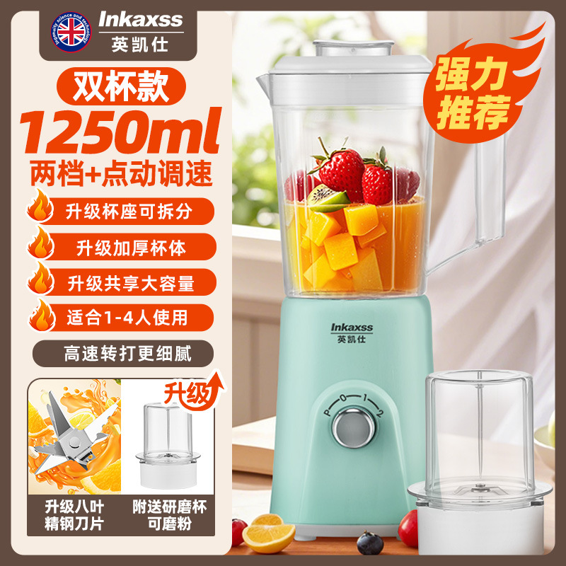 1250 мл + 8-лепестковый нож из нержавеющей стали + двухскоростная регулировка скорости + дюймовый переключатель + утолщенный корпус чашки