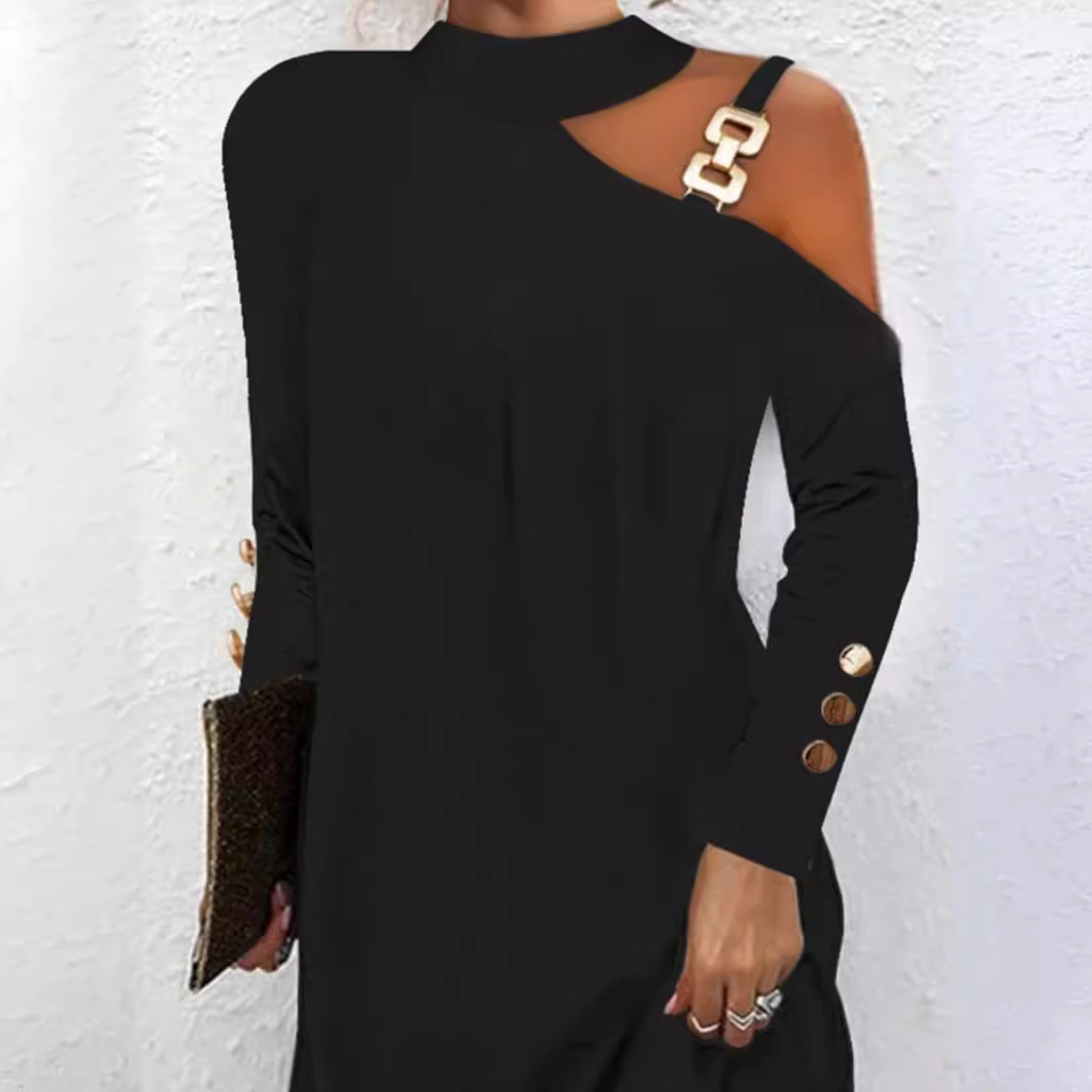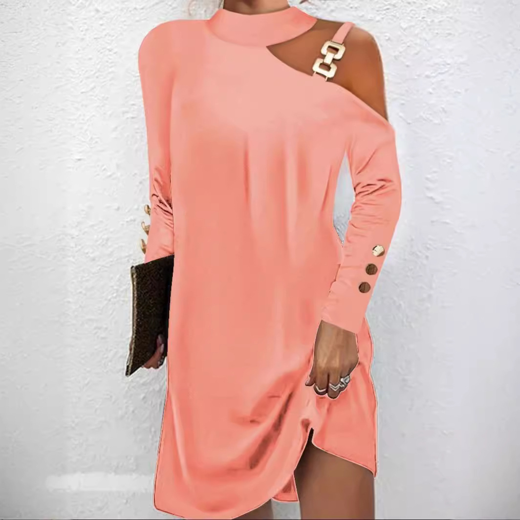 Главная страница > 2024, независимая станция желаний Amazon, горячий стиль, осеннее простое платье с металлической пряжкой и пуговицами, женская одежда