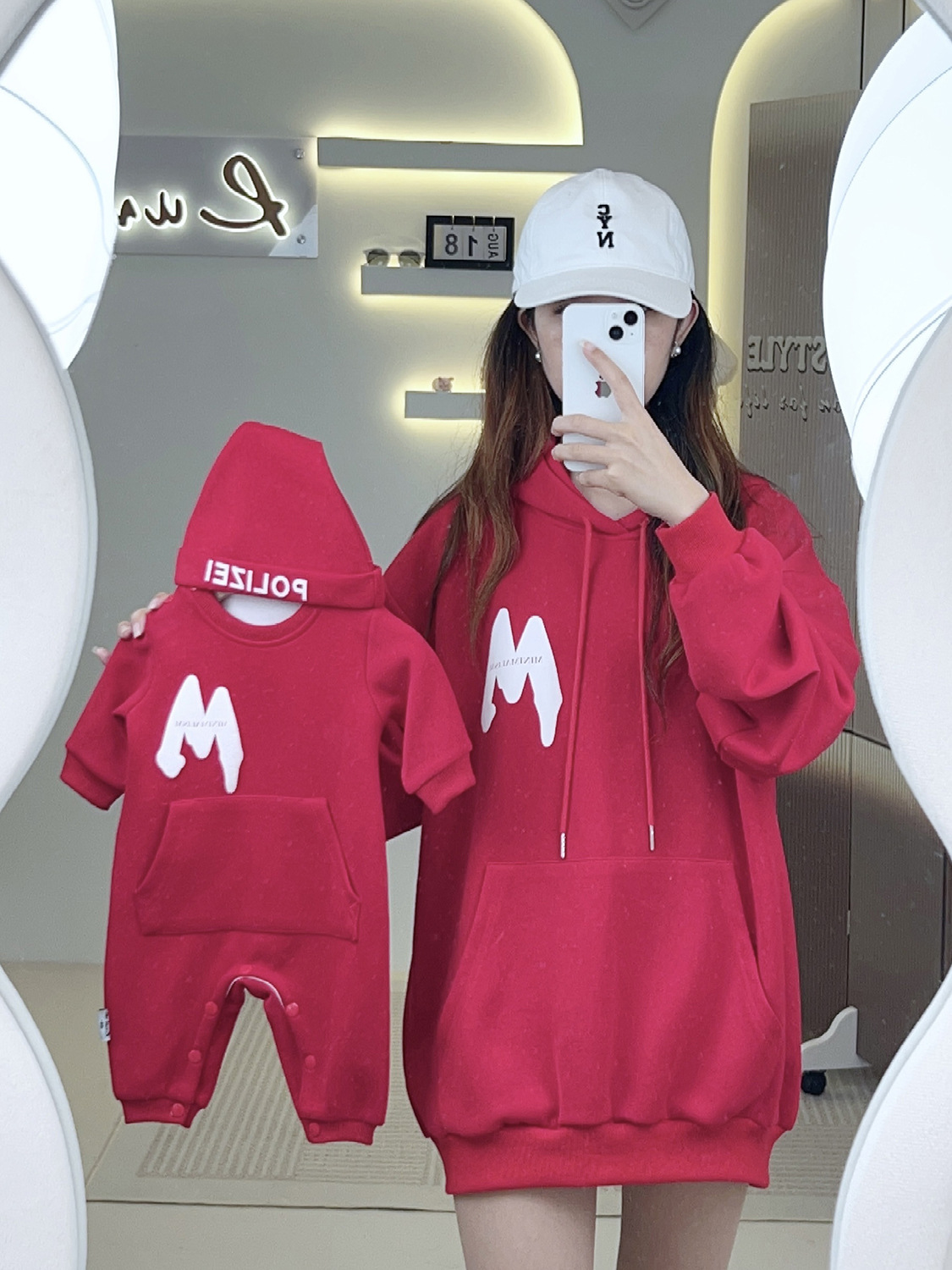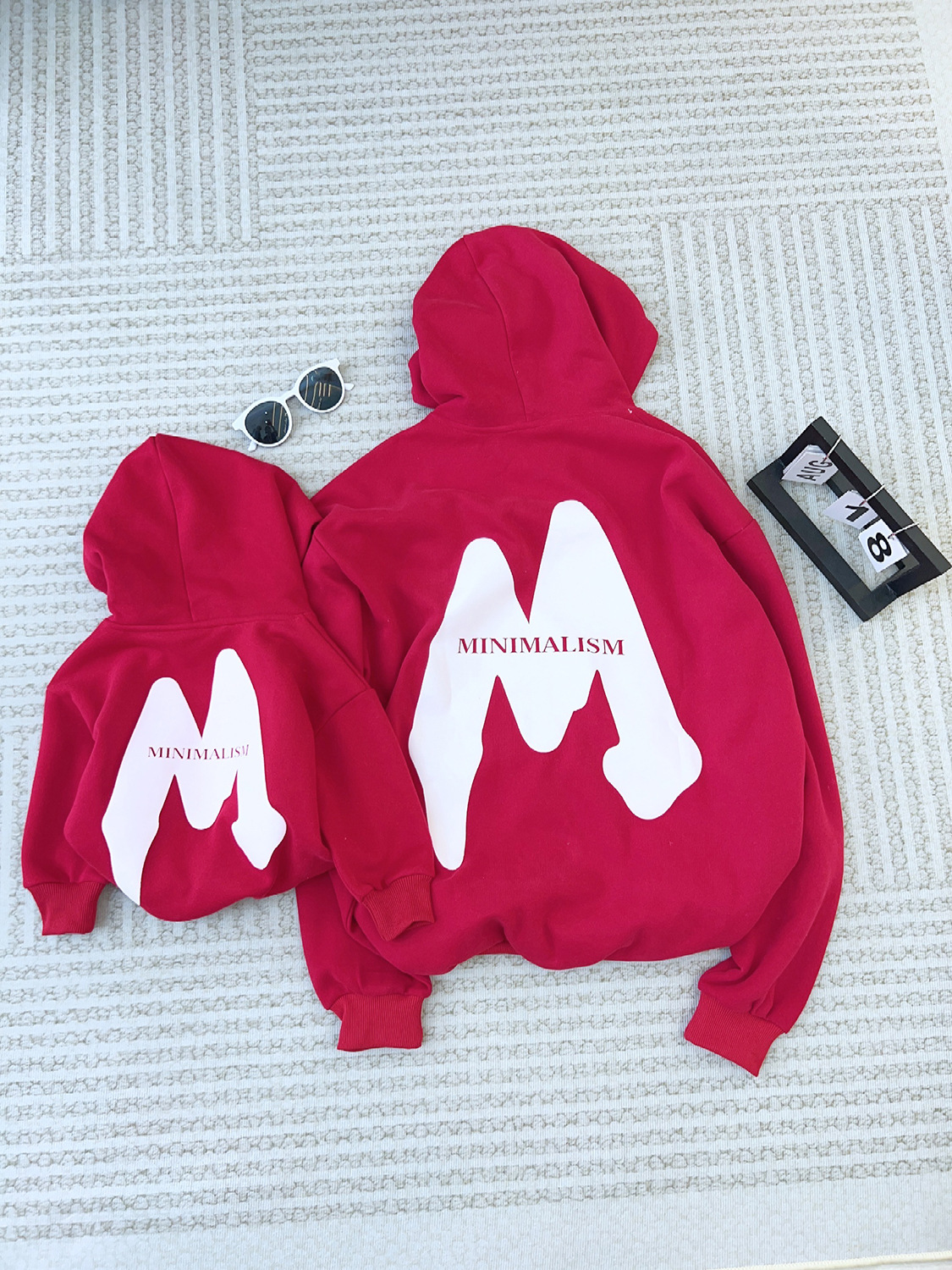 Комплекты для родителей и детей: новая коллекция 2025 – флисовая толстовка с капюшоном и буквенным принтом из пеноматериала M, осенне-зимняя, свободного кроя, модная, универсальная.