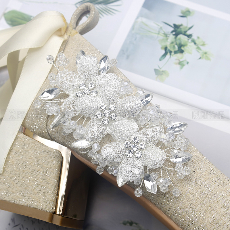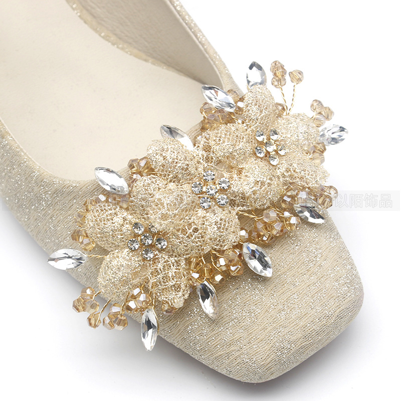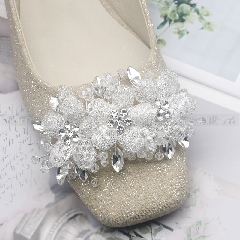 Главная страница > Универсальные высококачественные кружевные свадебные туфли с кристаллами и бриллиантами, 3 цветка, пряжка для обуви, ручная работа, медная проволока, аксессуары для свадебных туфель
