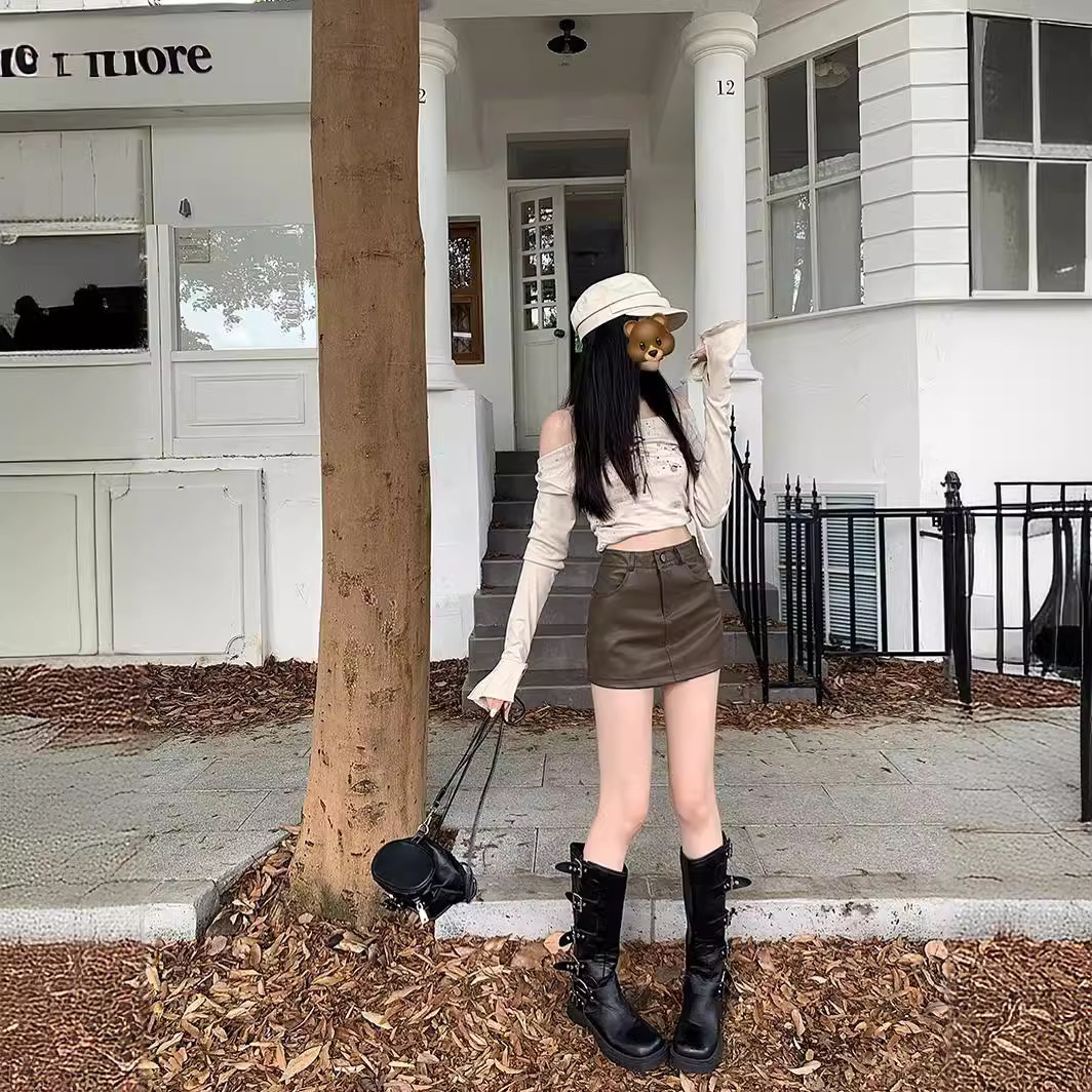 Spicy Girl pupi a syu юбка женская осень-зима 2023 новая высокая талия тонкая бедра короткая юбка карри юбка