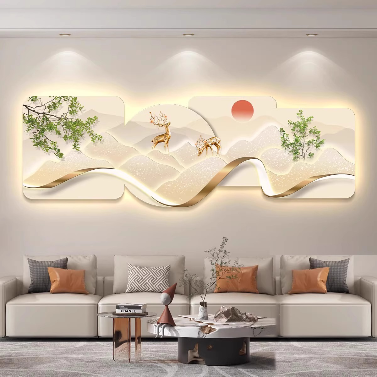 Главная страница > Современная светлая роскошная гостиная декоративная роспись светодиодные светильники с лампами роспись высокого уровня диван фон настенная роспись новые фрески