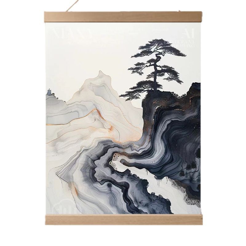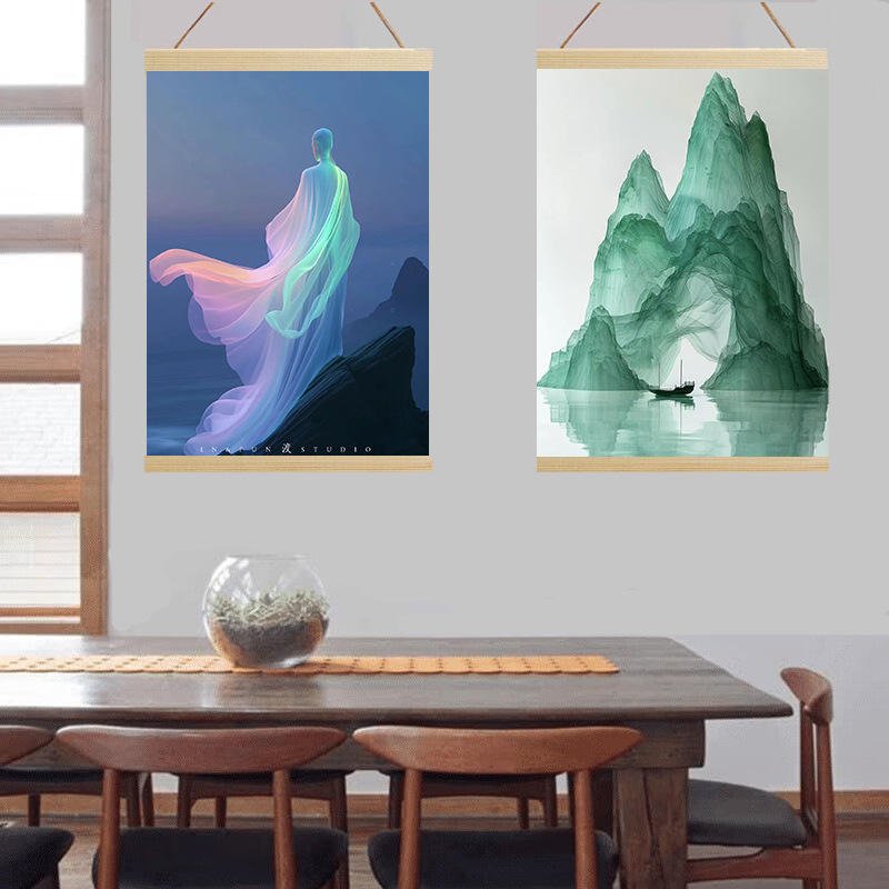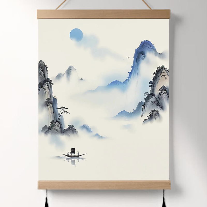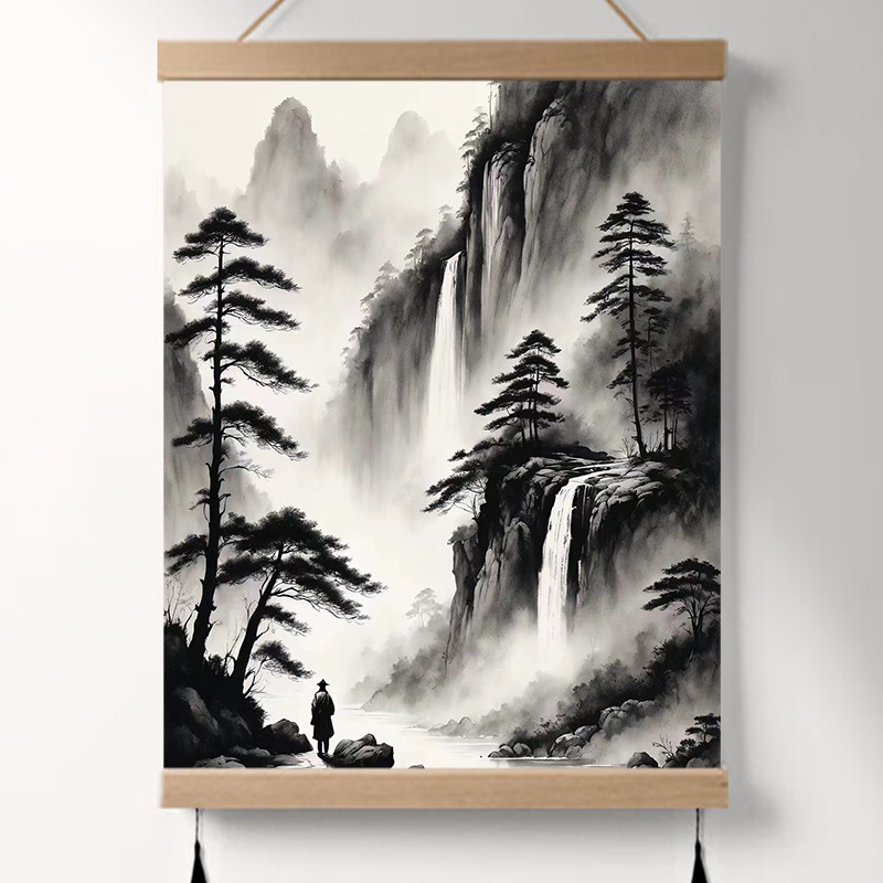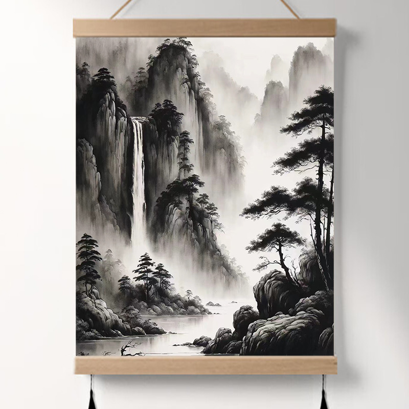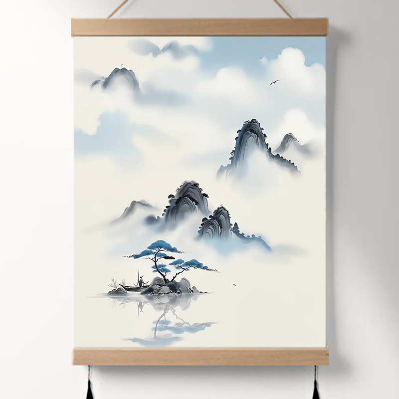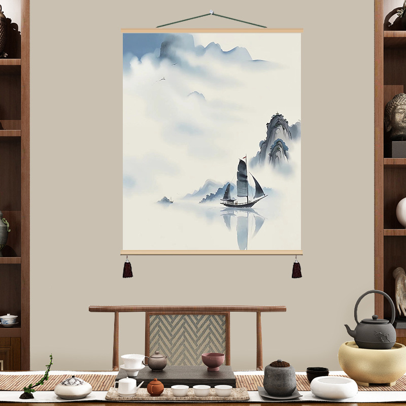 Главная страница > Винтажная рулонная картина для декора гостиной, каллиграфическая живопись для фоновой стены офиса, пейзажная картина, привлекающая удачу, настенная рулонная картина.